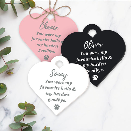 Favourite Hello - Heart: Personalised Pet Memorial Hanging Sign, Pet Loss Gift, Cat or Dog Tribute Plaque, Sorry For Your Loss Gift