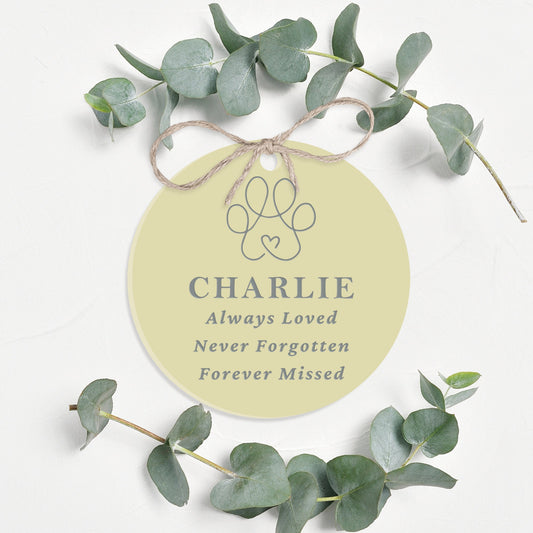 Never Forgotten - Paw Border: Personalised Pet Memorial Hanging Sign, Pet Loss Gift, Cat or Dog Tribute Plaque, Sorry For Your Loss Gift