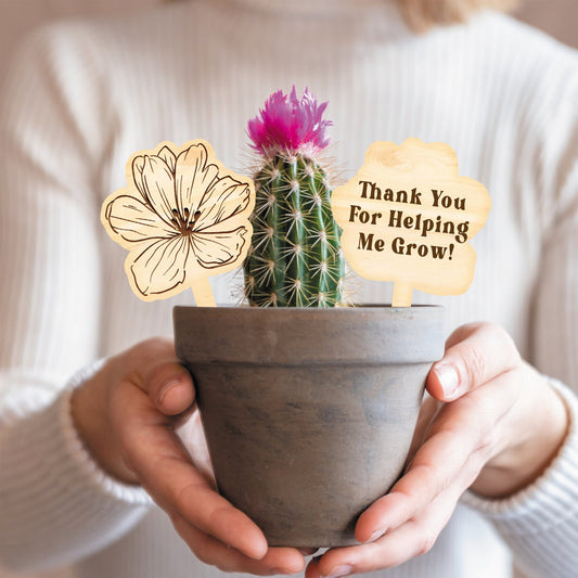 Flower Thank You For Helping Me Grow Plant Sign - Cute Plant Tag Thoughtful Plant Gift For Teacher Small Present