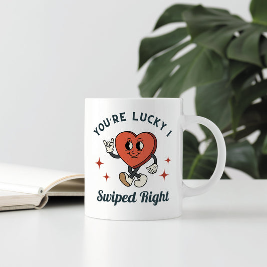 Lucky I Swiped Right: Funny Relationship Mug, Gift for Couples, Online Dating, Gift For Valentines or Anniversary, Joke Mug For Partner