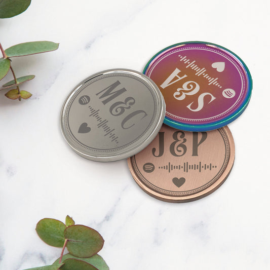Personalised Initials & Song Scan Coin: Coin with Custom Initials and Song, Cute Music Gift, Perfect Gift For Valentines and Anniversary