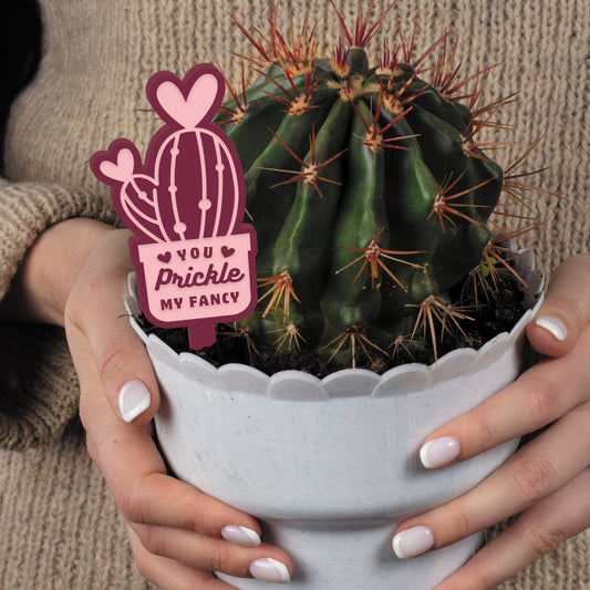 Prickle My Fancy - Acrylic Plant Tag: Funny Plant Pun, Cheeky Cactus Plaque, Gift for Valentines or Anniversary, Small Gift For Plant Lover