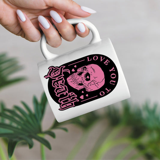 Love You To Death Mug: Dark Humour Love Gift, Funny Edgy Valentine's Day Gift, Elder Emo, Goth Gift, Spooky Pink Skull Mug For Him or Her