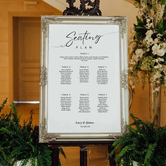 Personalised Wedding Seating Plan Sign | Minimal Black & White Theme Seating Table Chart for 512 Tables | Custom Wedding Decor