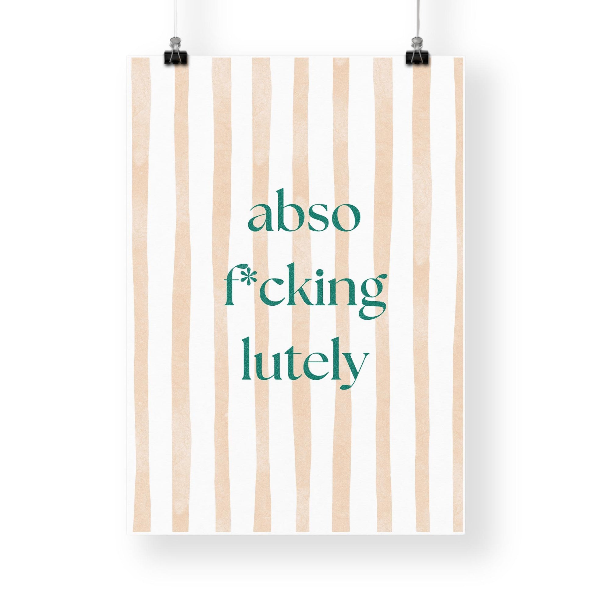 Abso-F*cking-Lutely Stripes Minimalist Poster Typography Quote Wall Art Funny Elegant Swear Print Aesthetic Home Decor