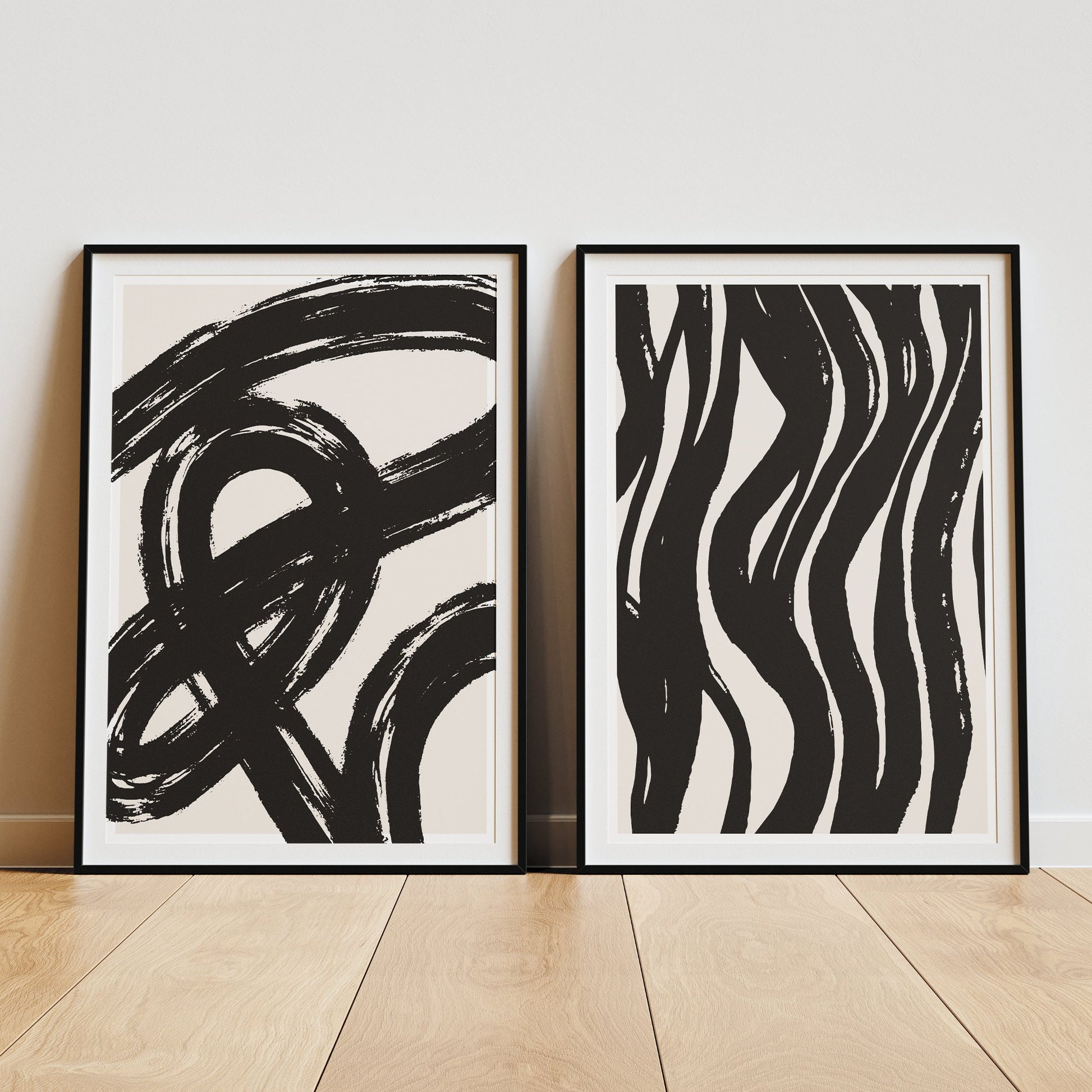 Abstract Black Paint Lines Poster: Modern Art, Minimal Home Decor, Trendy Wall Art - Aesthetic Print For Bedroom, Entry Way, Living Room
