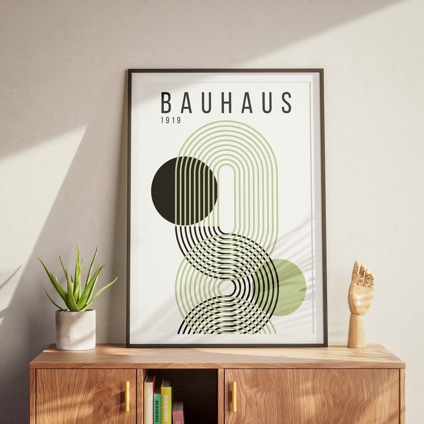 Elevate your space with our stunning Mocha Green Bauhaus-Inspired Poster. This art print captures the essence of Bauhaus design with its clean lines, geometric shapes, and minimalist aesthetic, brought to life in a sophisticated mocha green palette. Our original artwork draws inspiration from the iconic Bauhaus movement, blending function and form to create a visually striking piece.