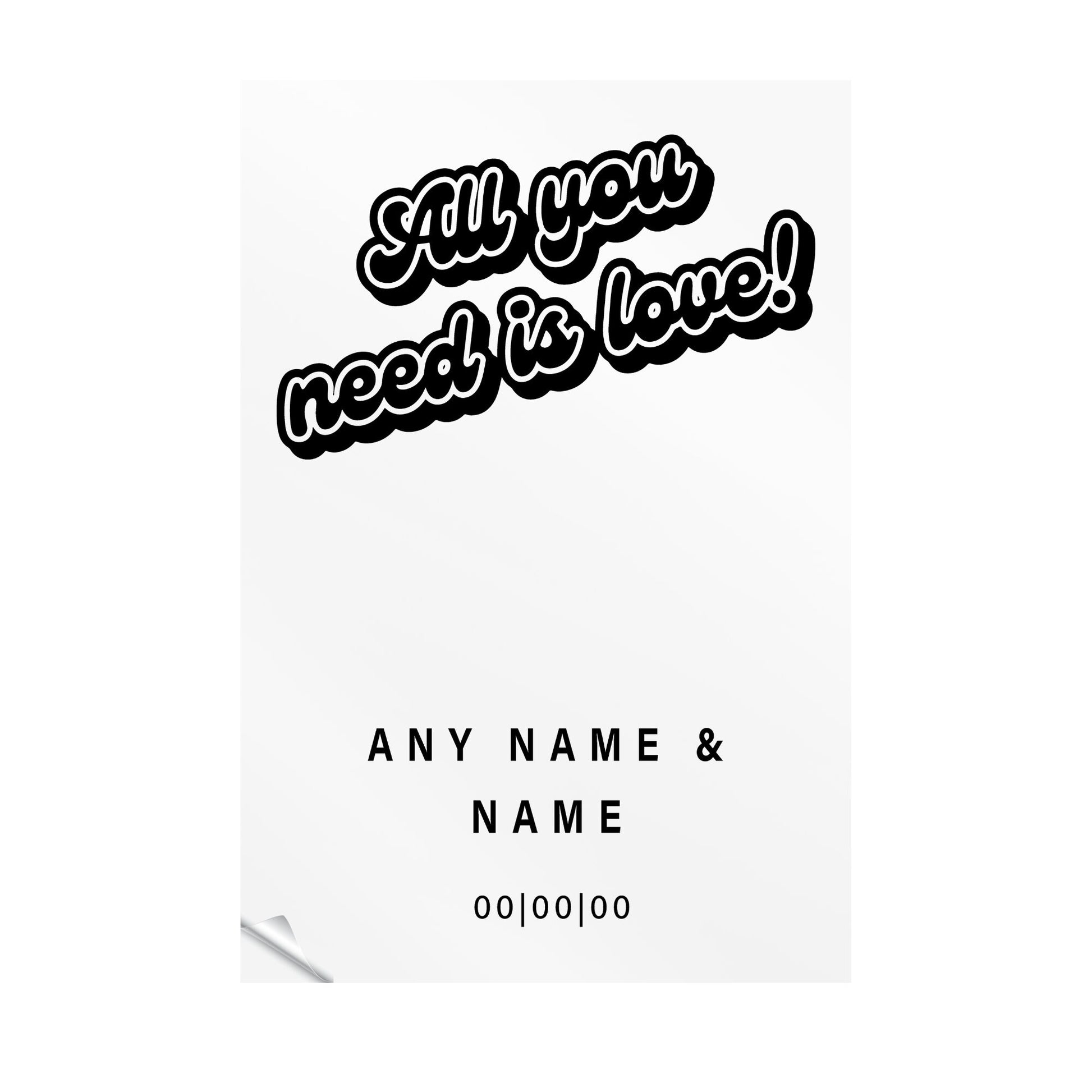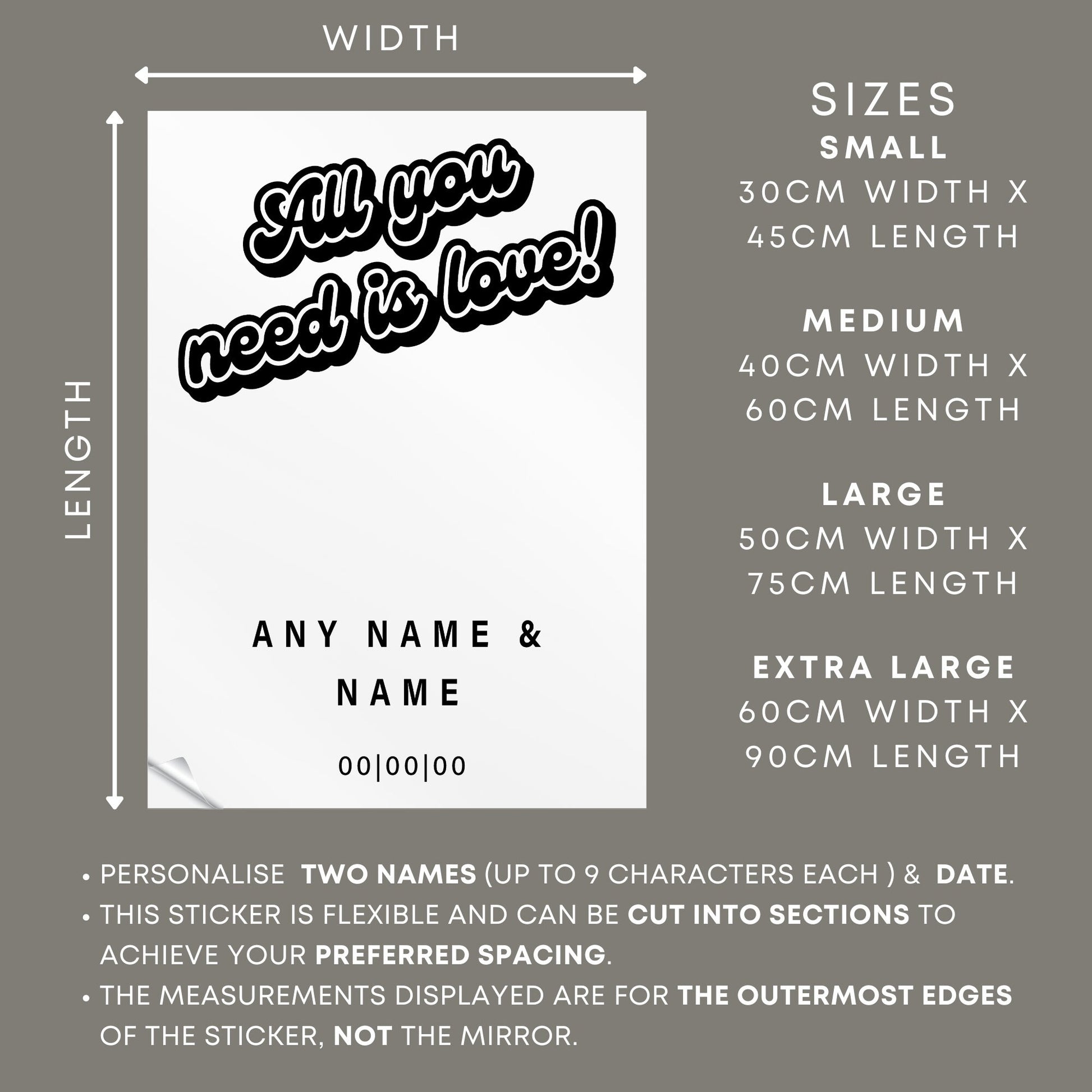 All You Need Is Love - Retro Sticker: Custom DIY Wedding Mirror Decal, Wedding Sign Sticker - Engagement, Wedding or Anniversary Decor
