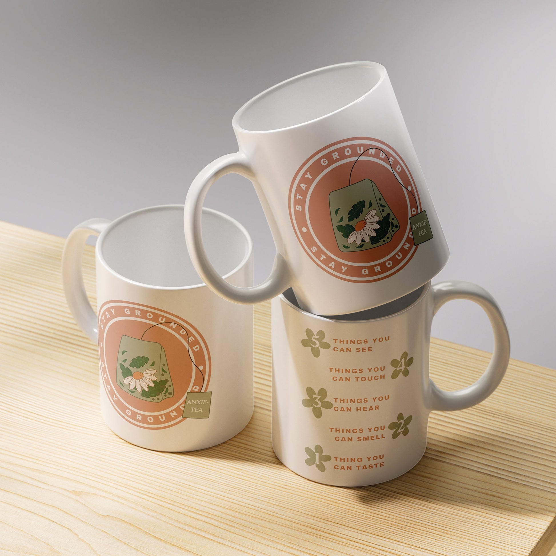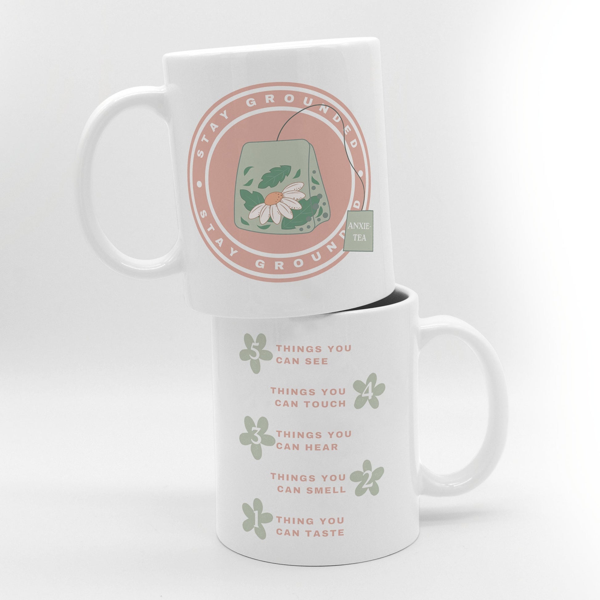 Anxie-tea Mug - Tea Bag: Unique Anxiety Mug, Grounding Technique, Neurodivergent, Empowering Gift, Self Care Awareness, Mindful Gift
