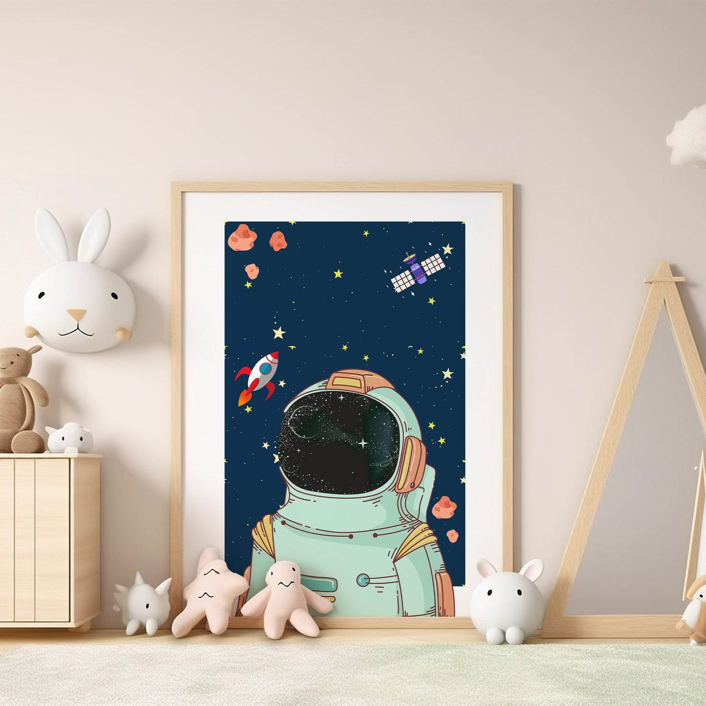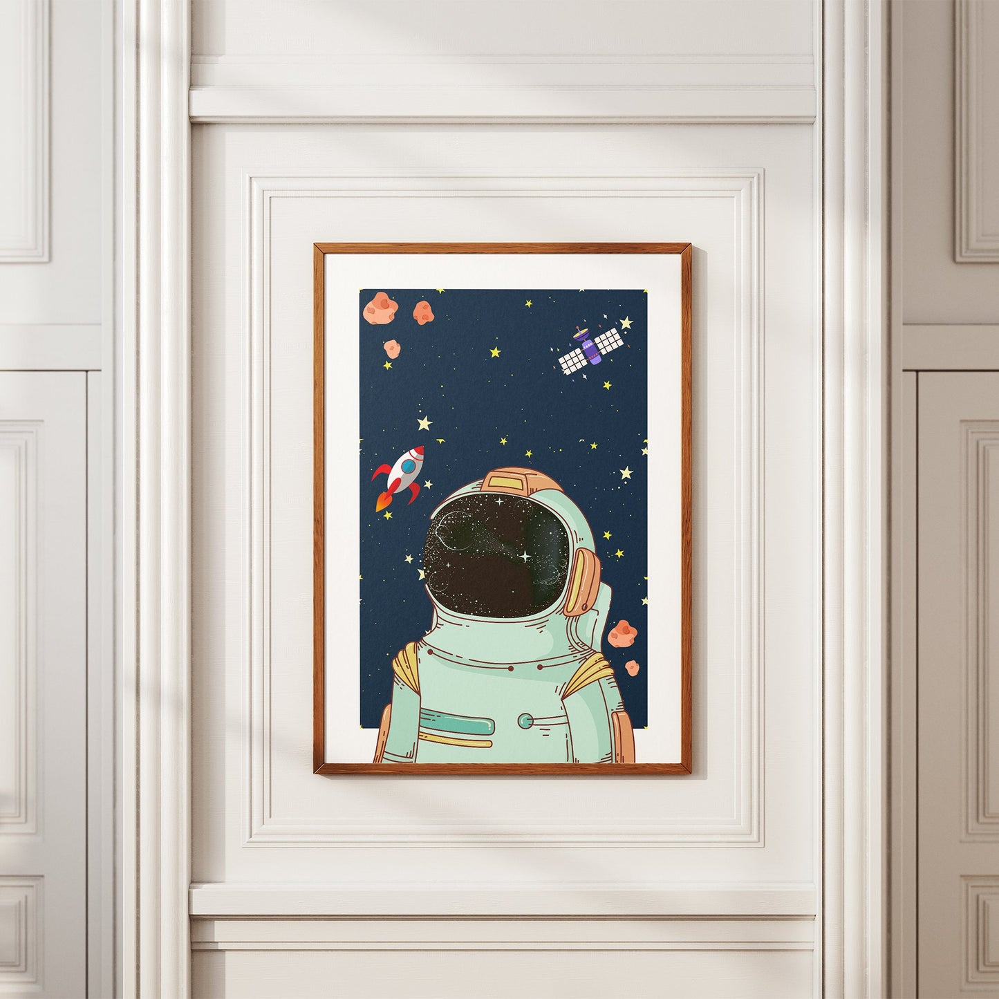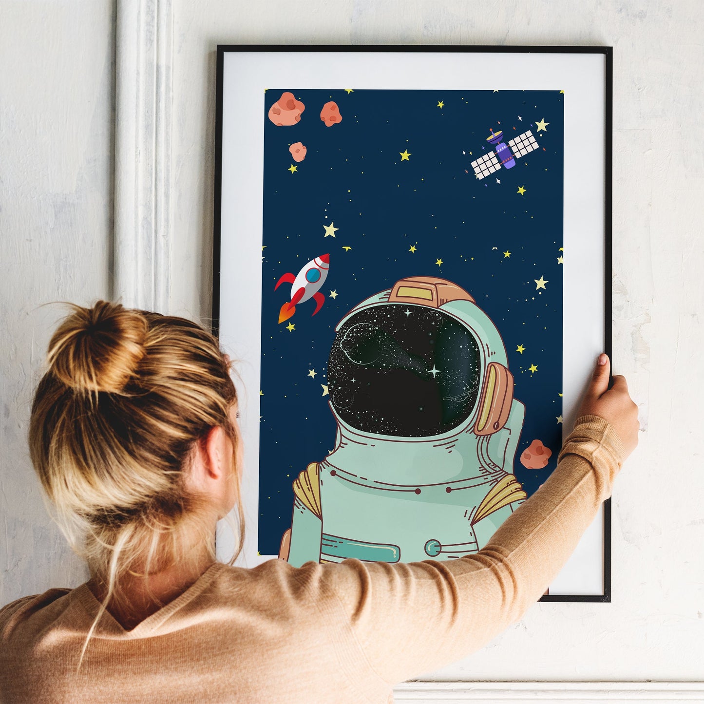 Crafted with vibrant colours and intricate details, this poster transports children to a realm where imagination knows no bounds. With each glance, they‘ll find themselves drawn into the astronaut‘s journey, pondering the endless possibilities that await among the twinkling lights of distant galaxies.