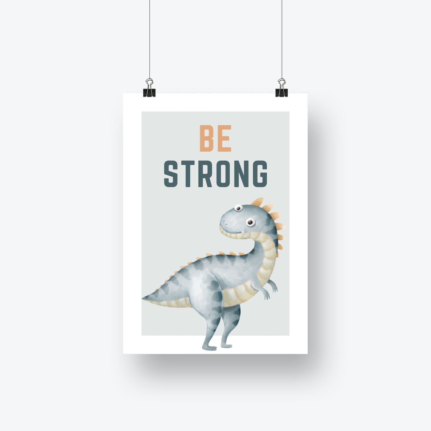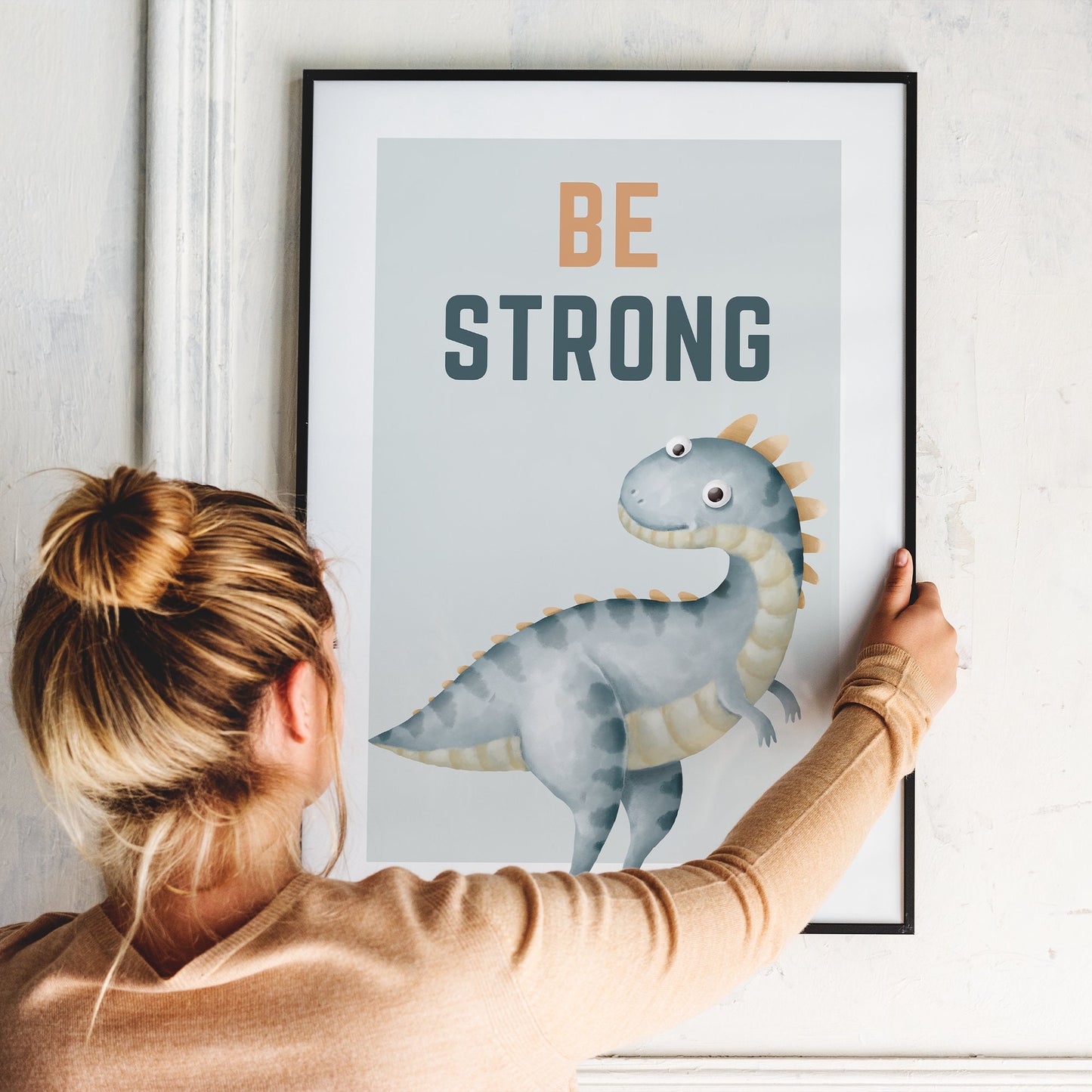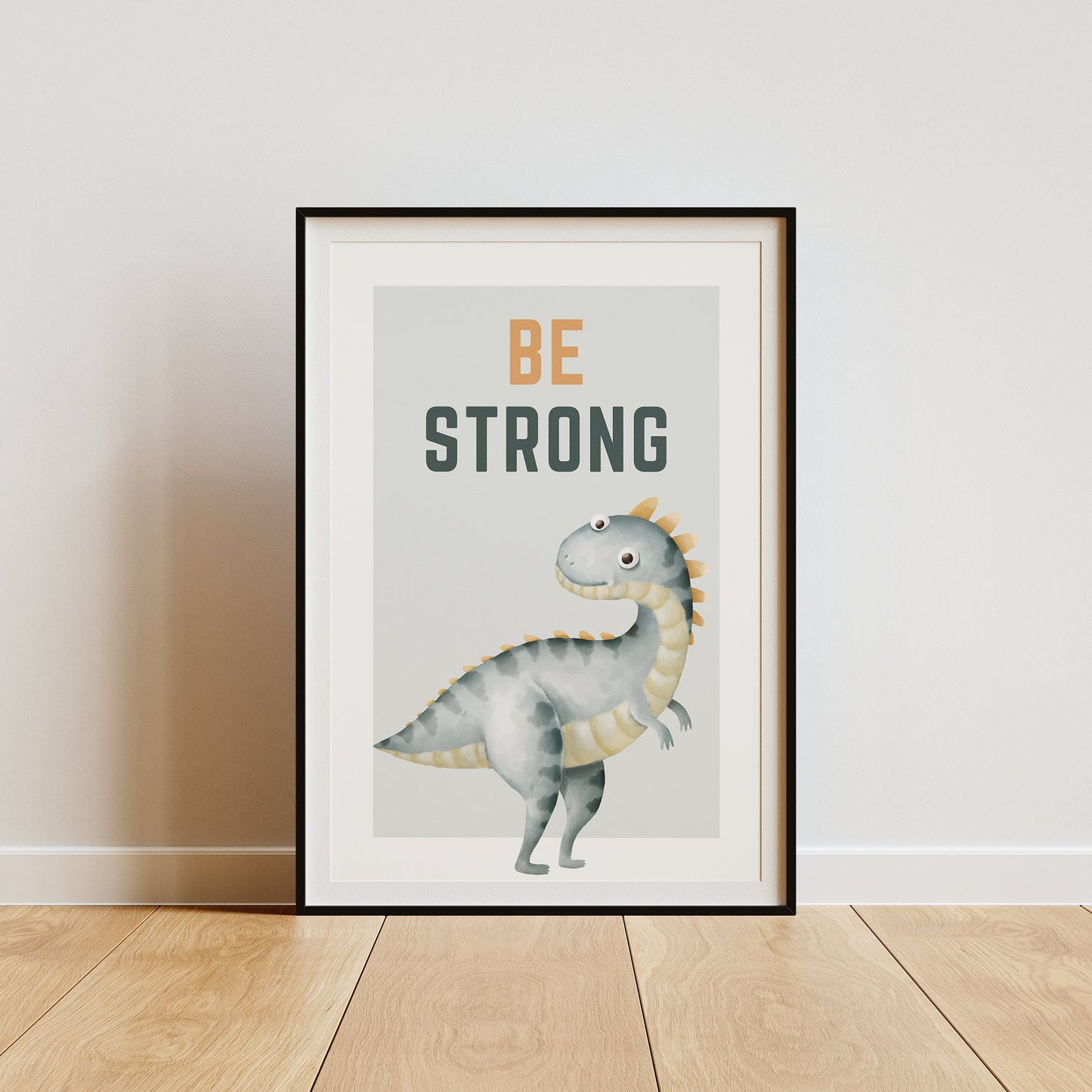 Be Strong Dinosaur Poster: Illustrated Dinosaur Print, Nursery Poster, Kids room decor, Children's Room Decor, Daily Reminder, Pastel Print