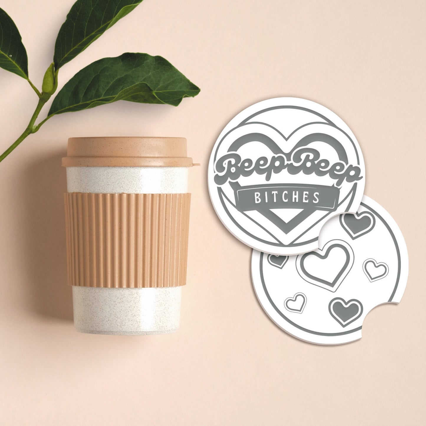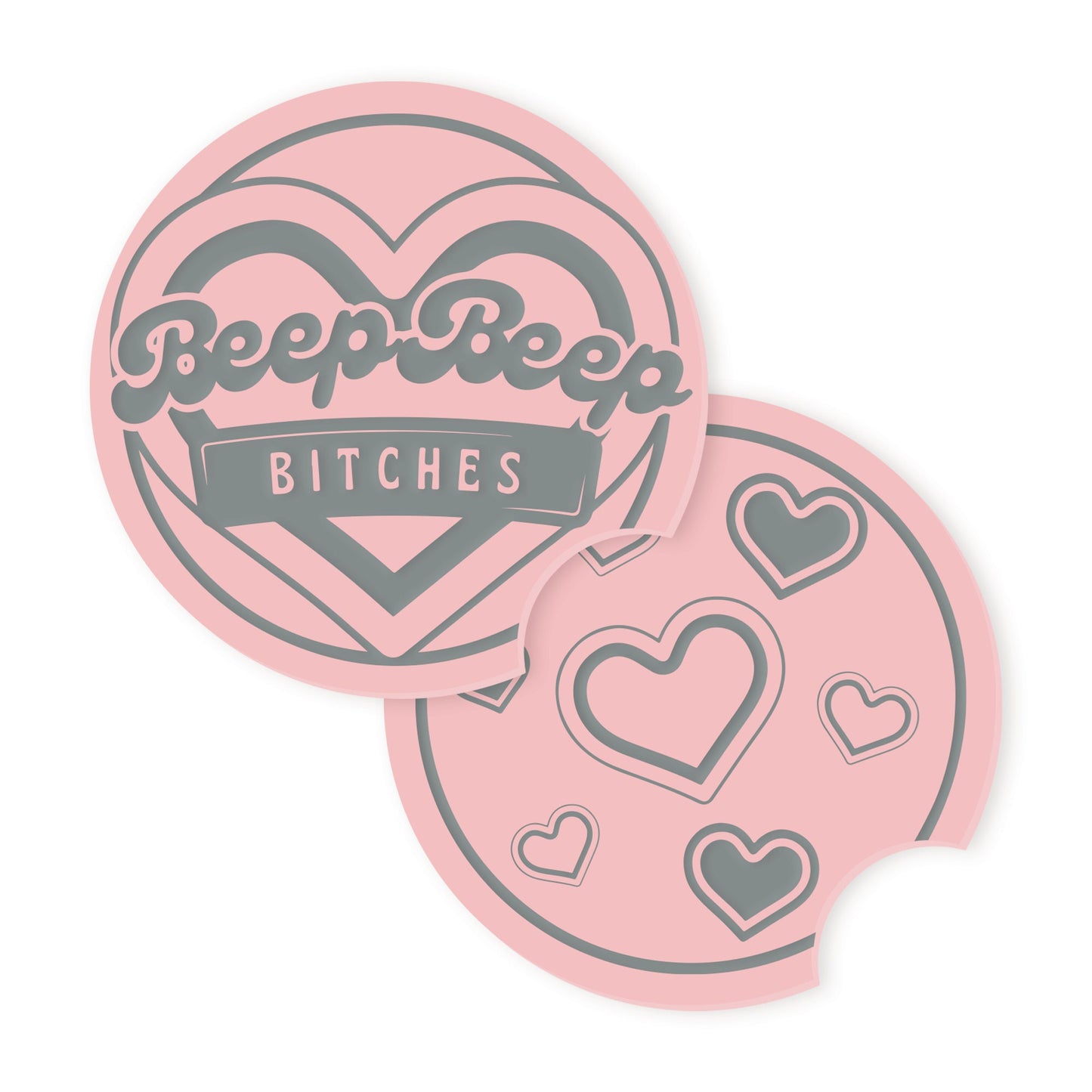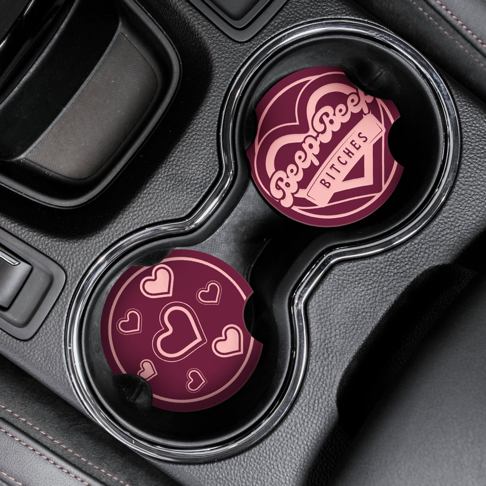 Beep Beep Car Coaster Set: Cup Holder Drinks Mat, Girly Car Accessory, Car Lover, Heart Pattern, Driving Test Gift, Cute Gift For Her