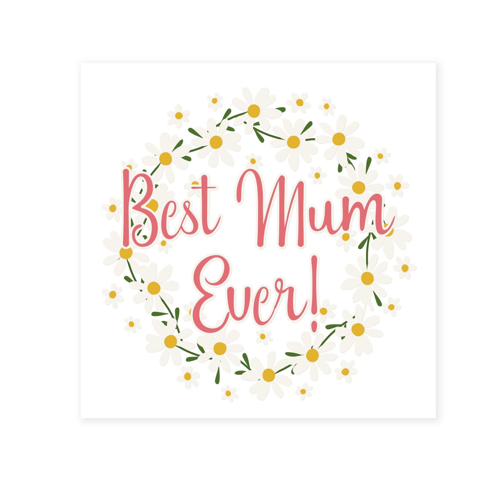 Make Mum smile with this sweet and stylish “Best Mum Ever” glass sticker, featuring a delicate daisy wreath and soft feminine lettering. This floral vinyl decal is the perfect way to turn any ordinary glass into a meaningful, heartfelt gift.