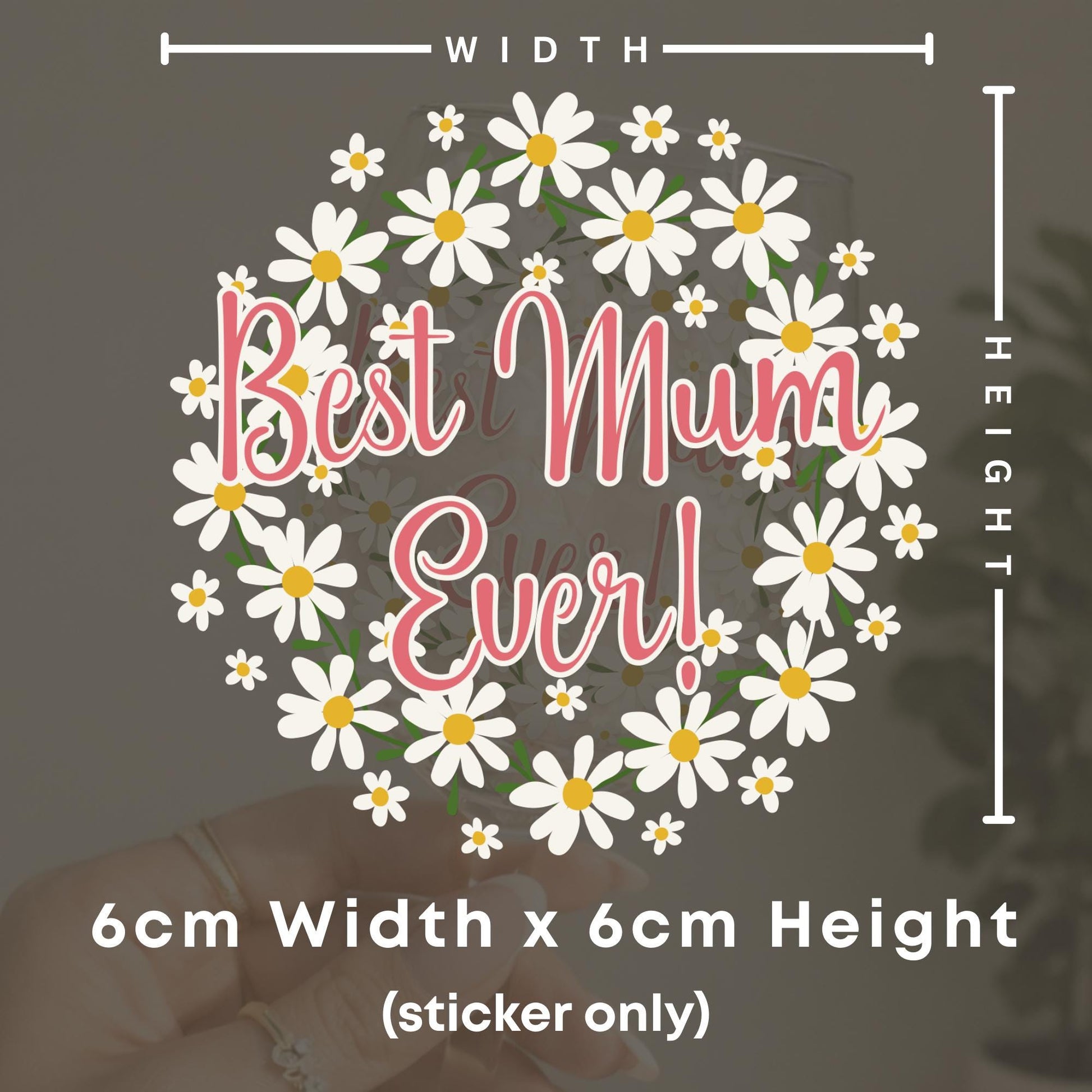 Best Mum Ever Glass Sticker | Mum Wine Glass Decal | Mothers Day Gift | Daisy Mum Vinyl Sticker | Gift for Mum