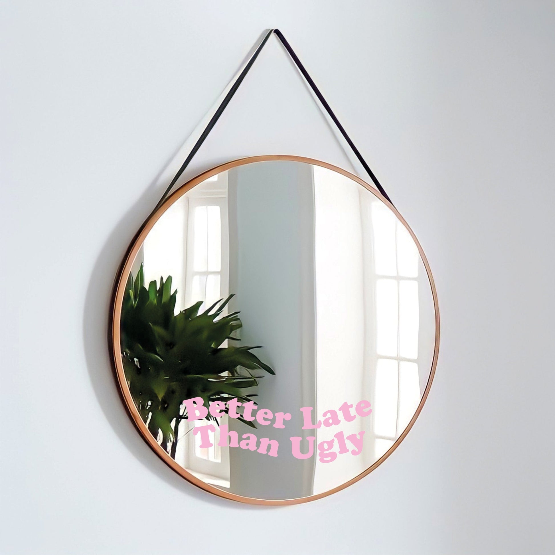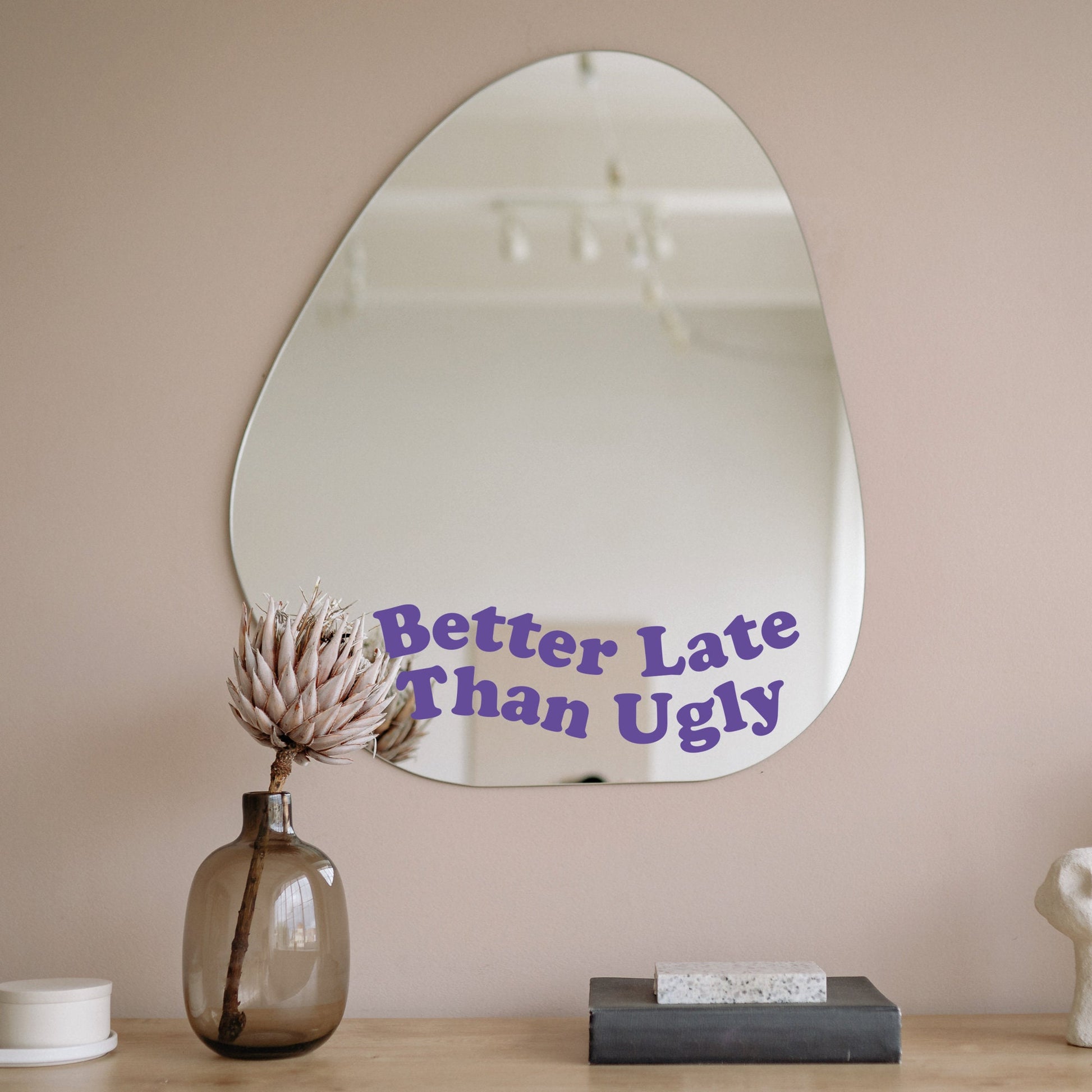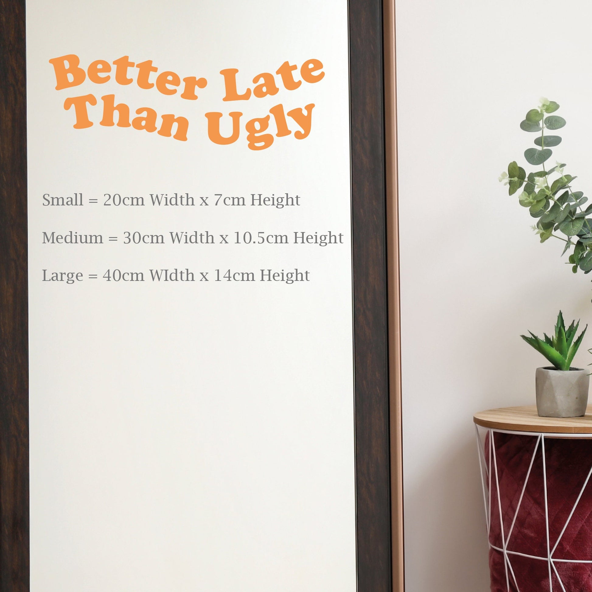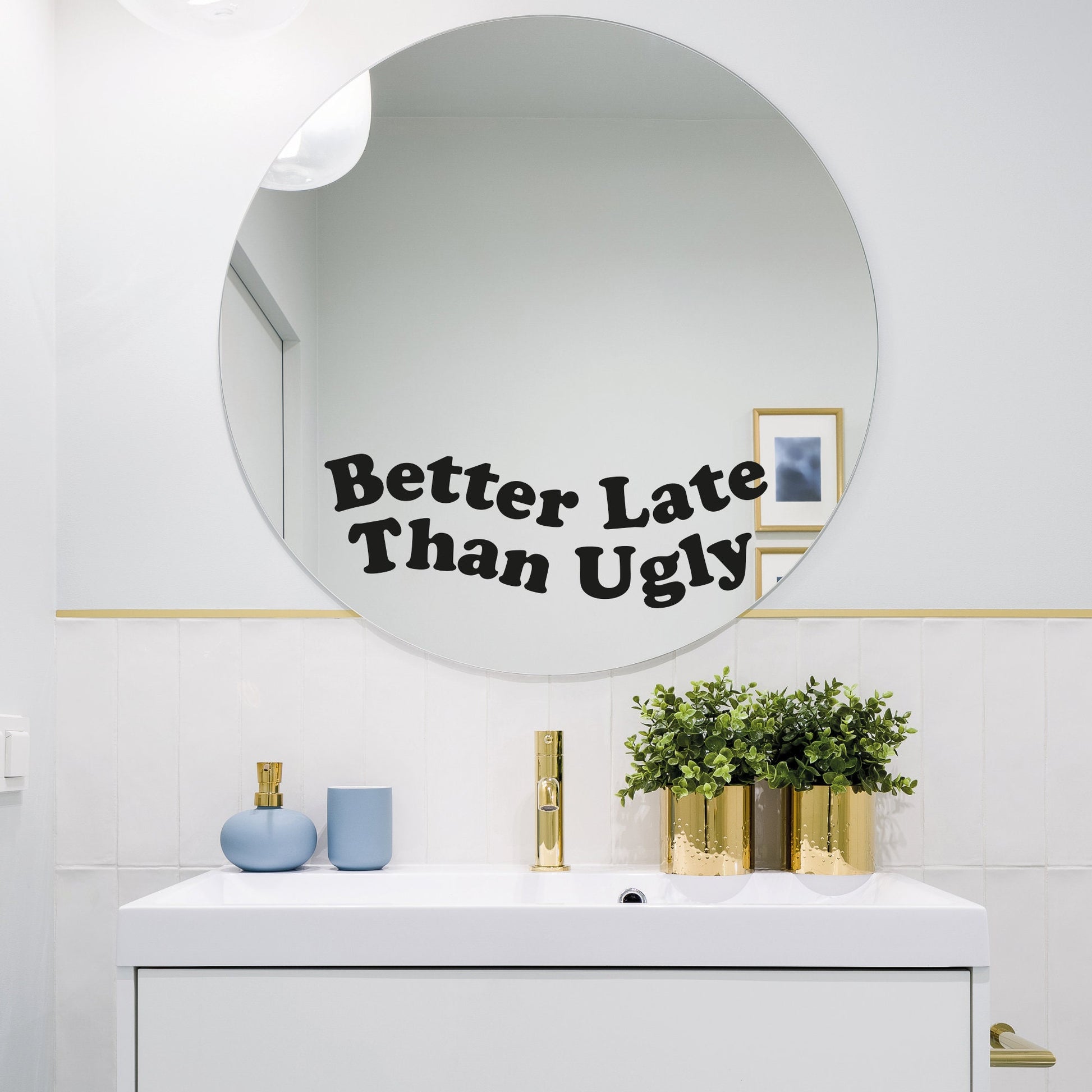 Better Late Than Ugly Funny Mirror Sticker Makeup Bathroom Mirror Girly Room Sticker