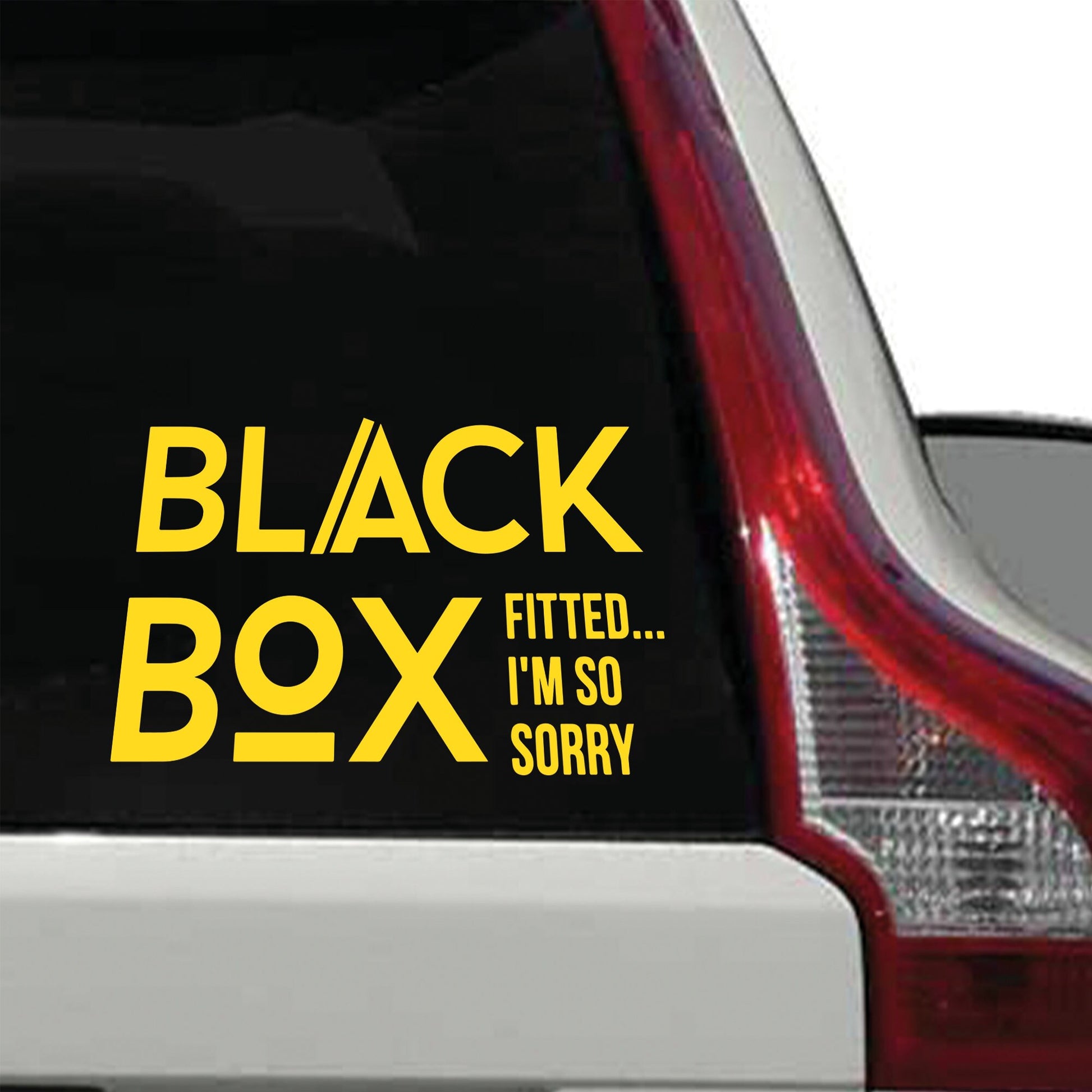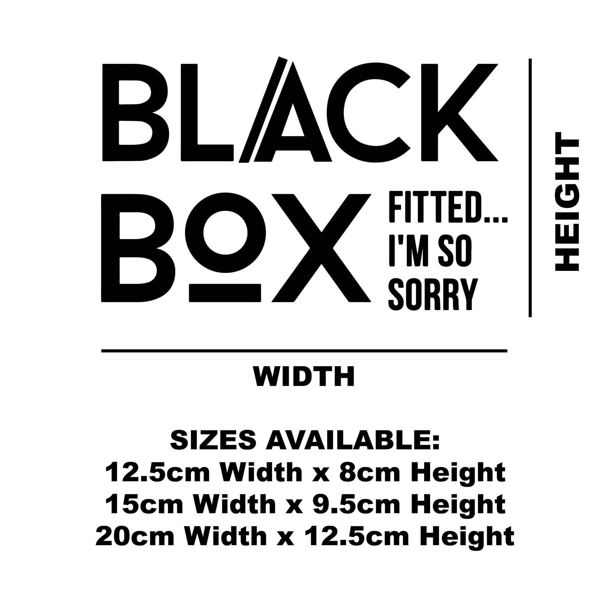 ‘Black Box Fitted...I‘m So Sorry‘ funny vinyl sticker for car window or bumper.