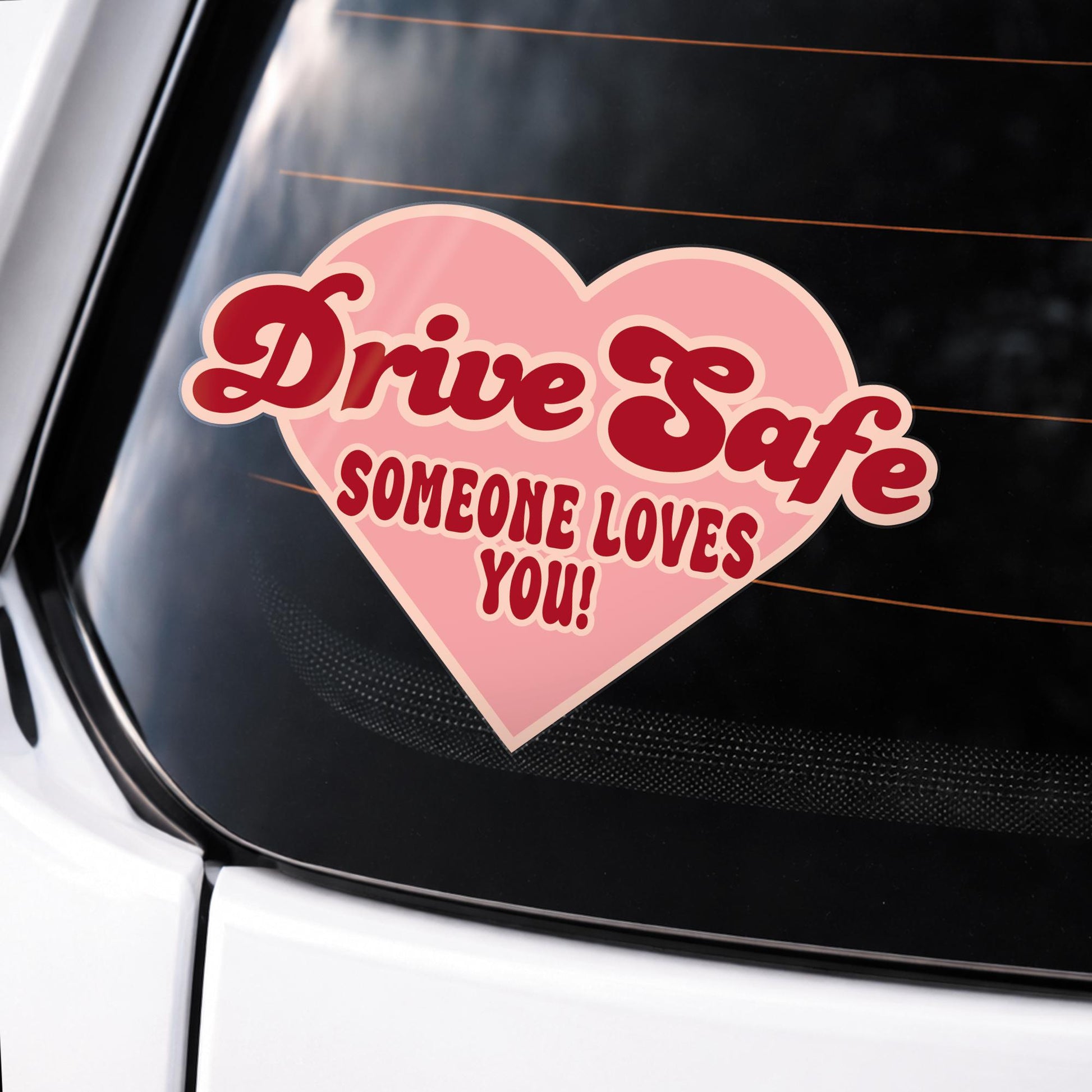 Spread a little kindness on the road with this Drive Safe Someone Loves You car sticker. Designed to gently remind other drivers to slow down and drive carefully, this cute heart decal delivers an important message in a warm and eye-catching way.