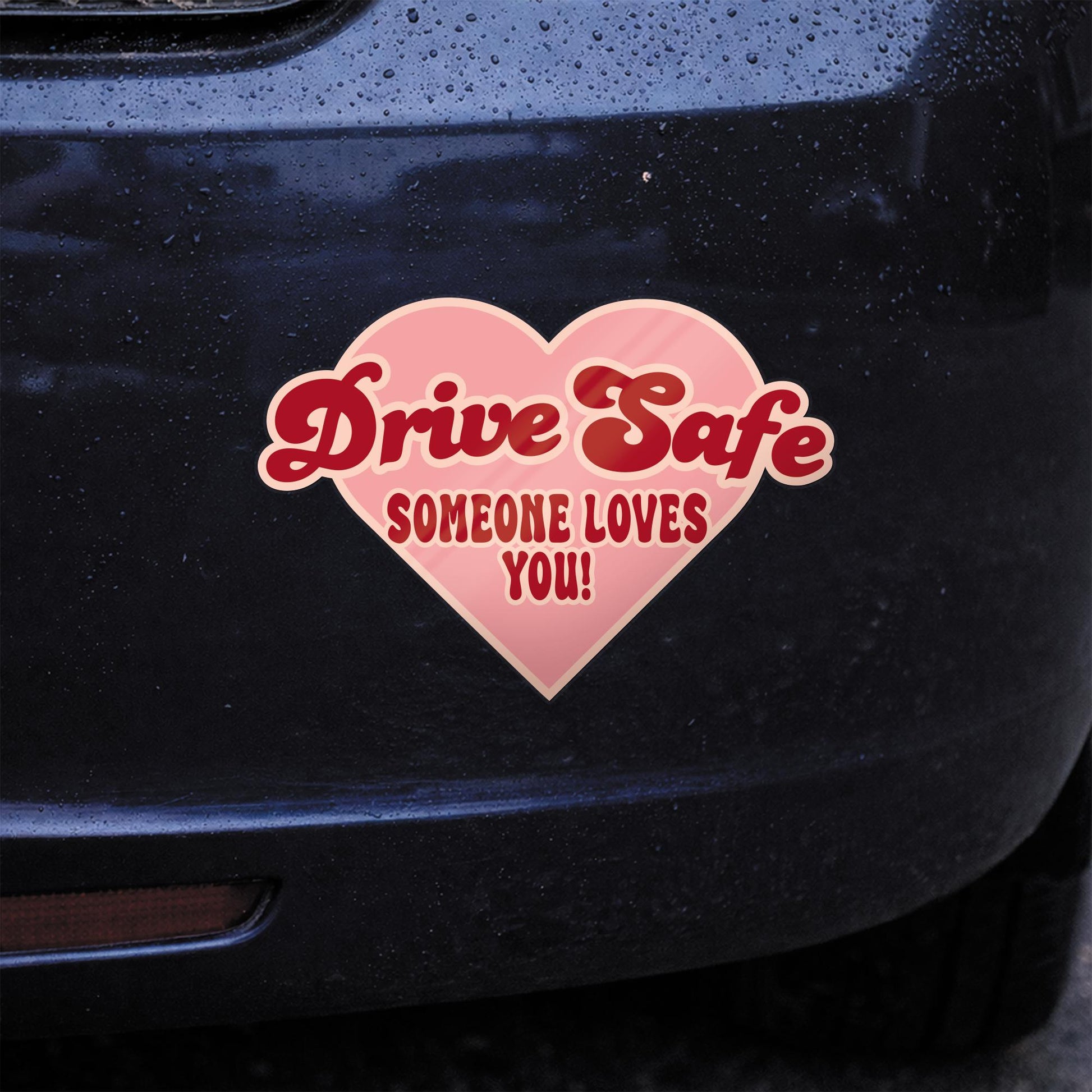 Featuring a soft pink heart and bold retro-style lettering, the sticker is easy to read from behind and makes a thoughtful addition to any car. Whether placed on a rear window or bumper, it shares a positive reminder that someone, somewhere, cares about getting home safely.
