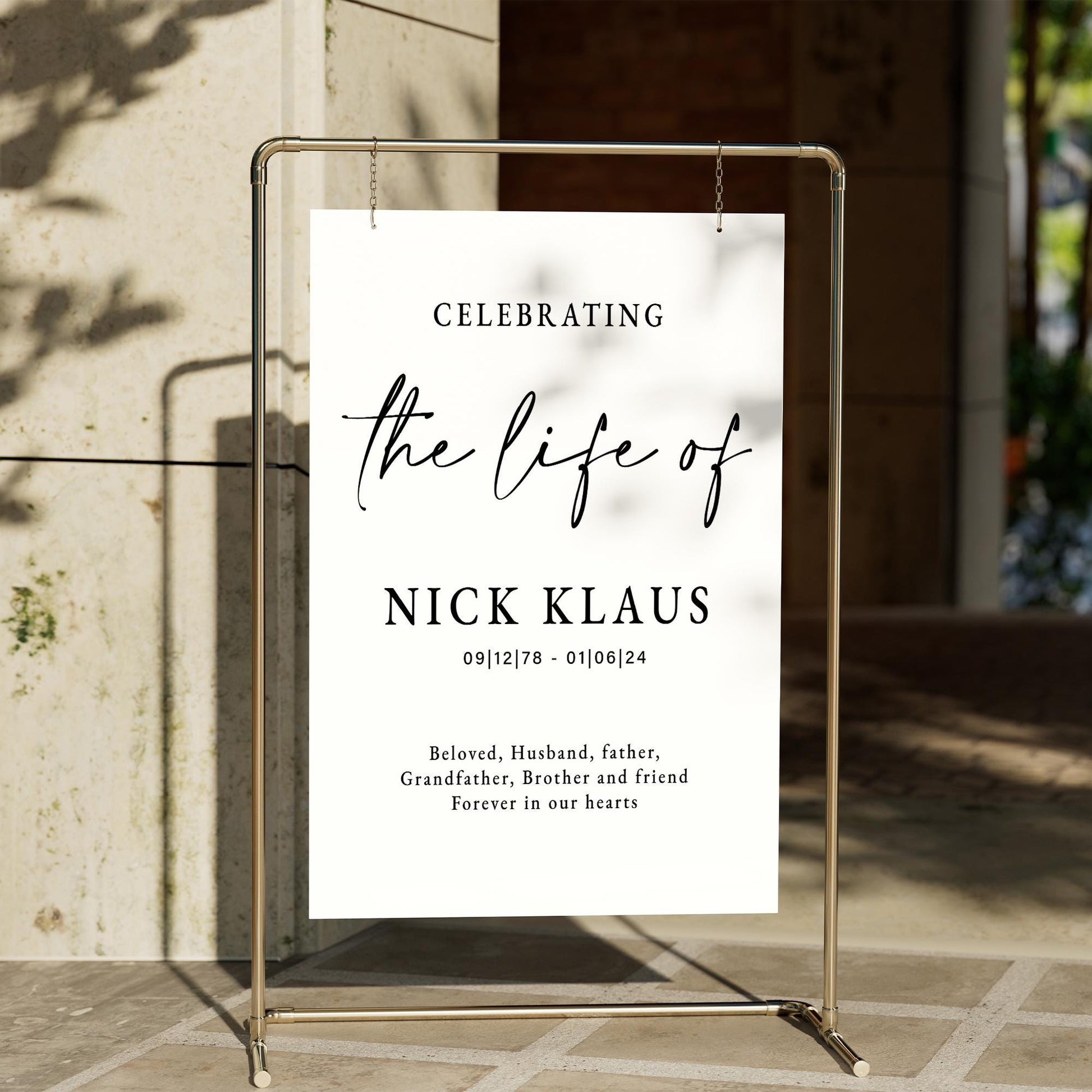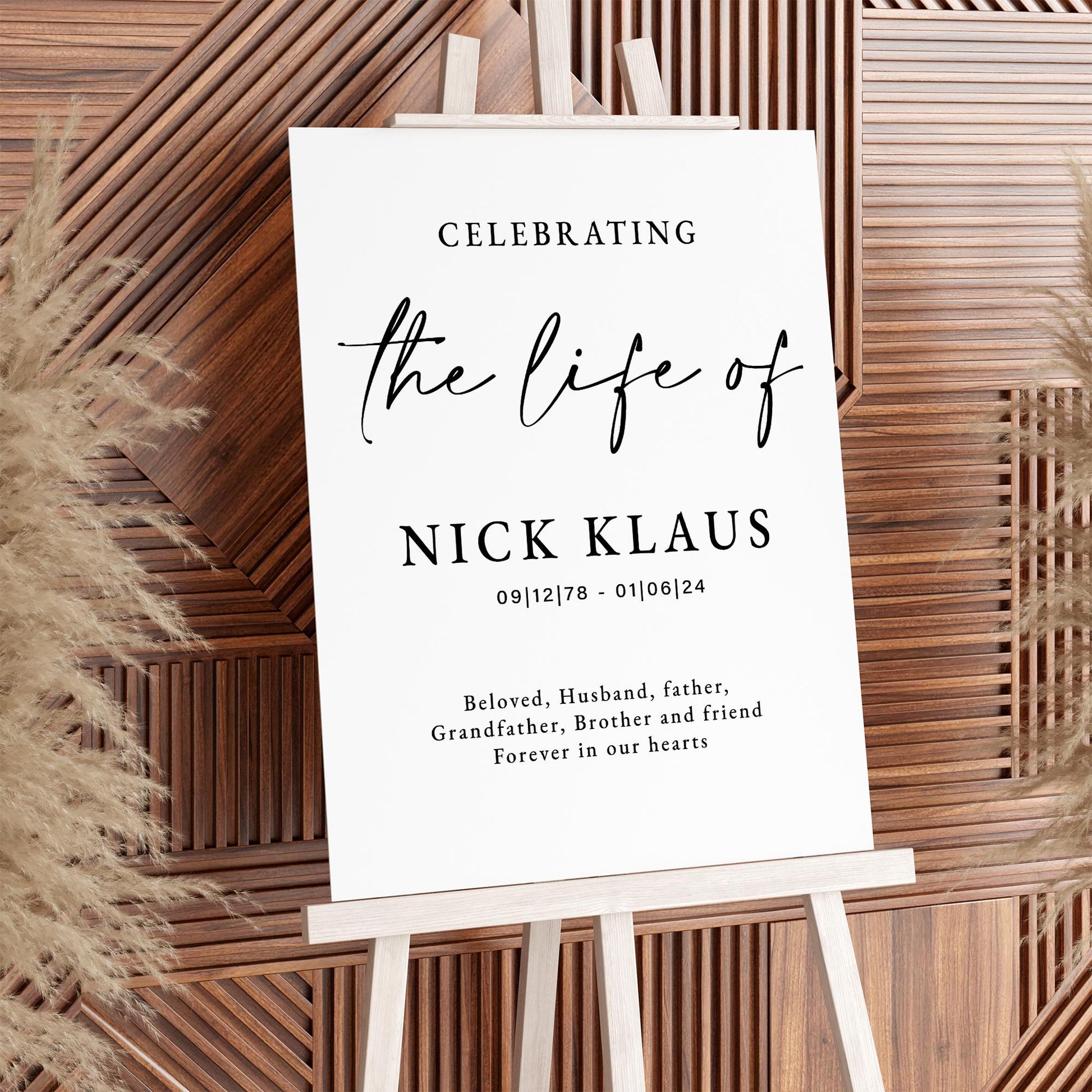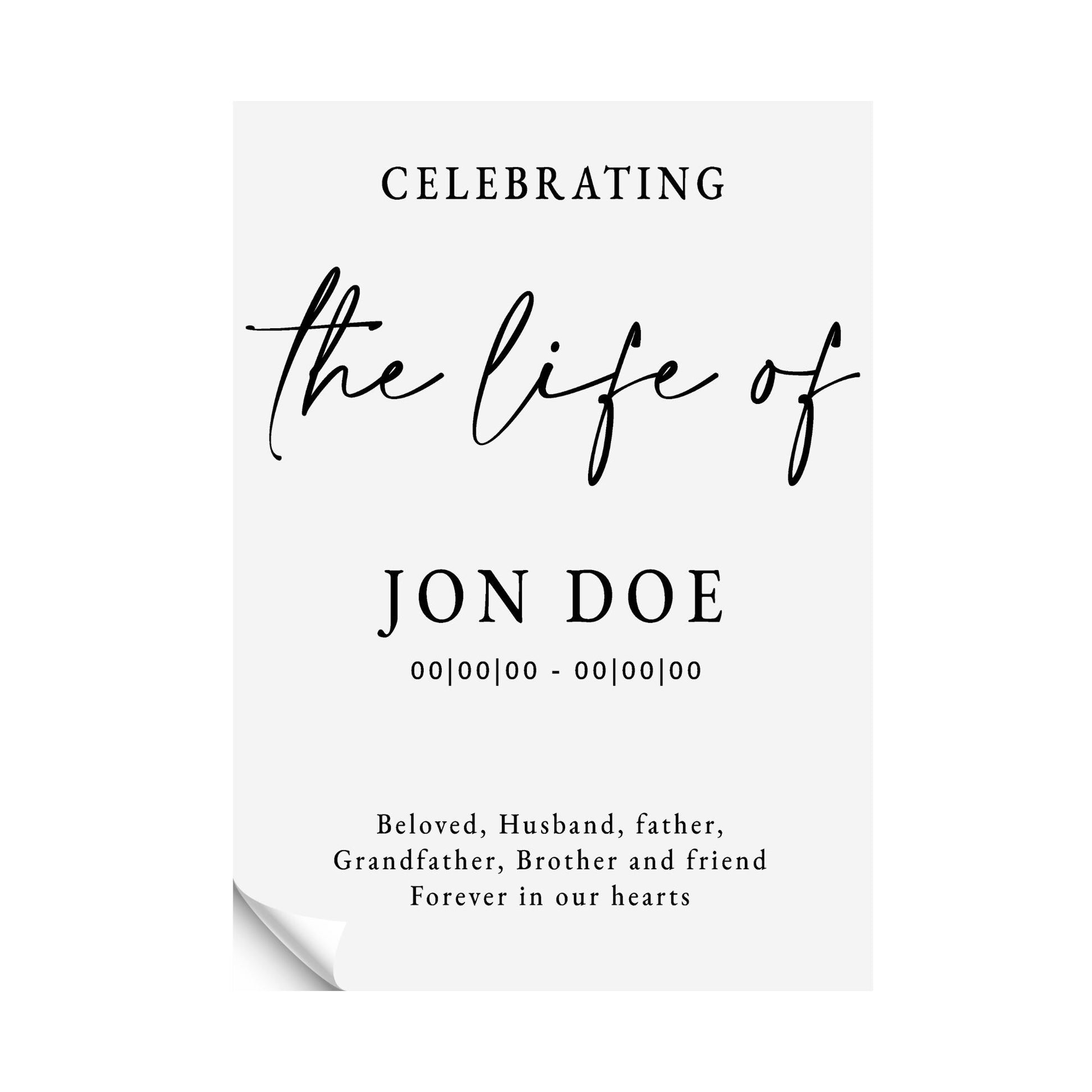Welcome friends and family with grace and heartfelt tribute with our beautifully crafted "Celebrating the Life Of" funeral sign. This elegant and personalized sign is designed to honour and remember your loved one in a dignified and memorable way.