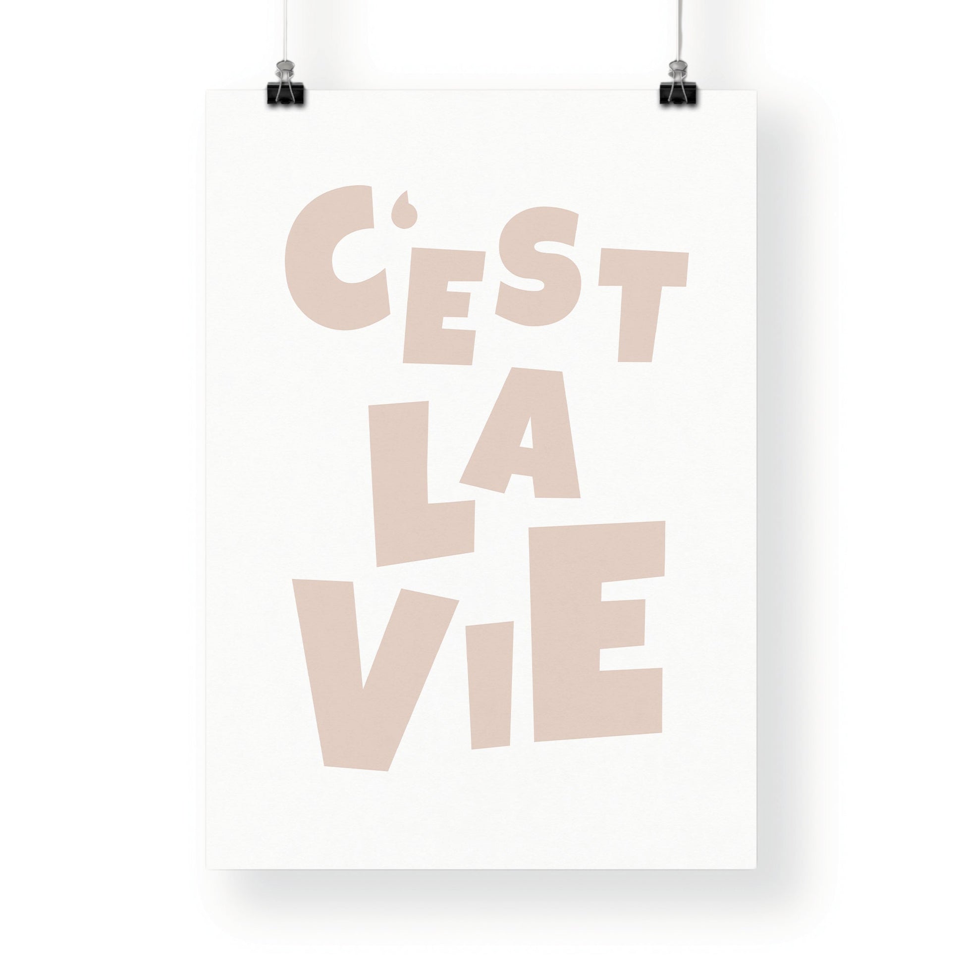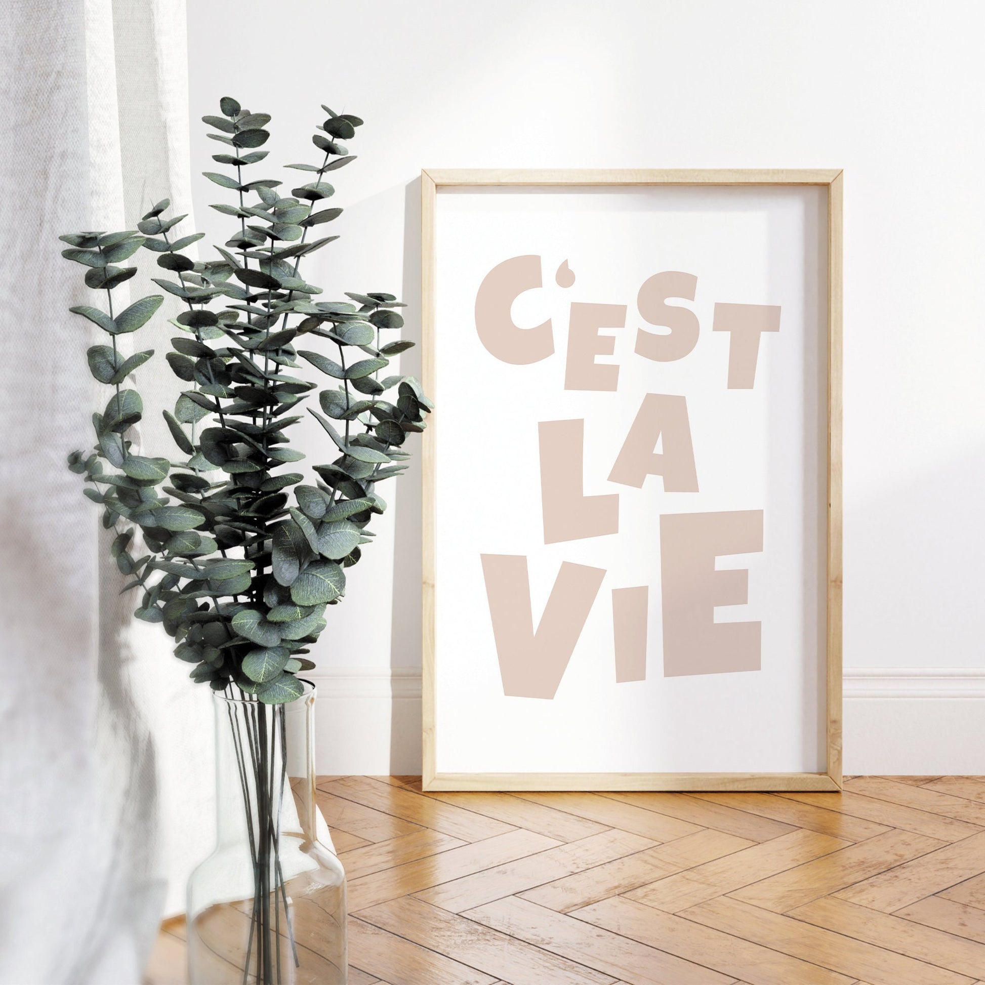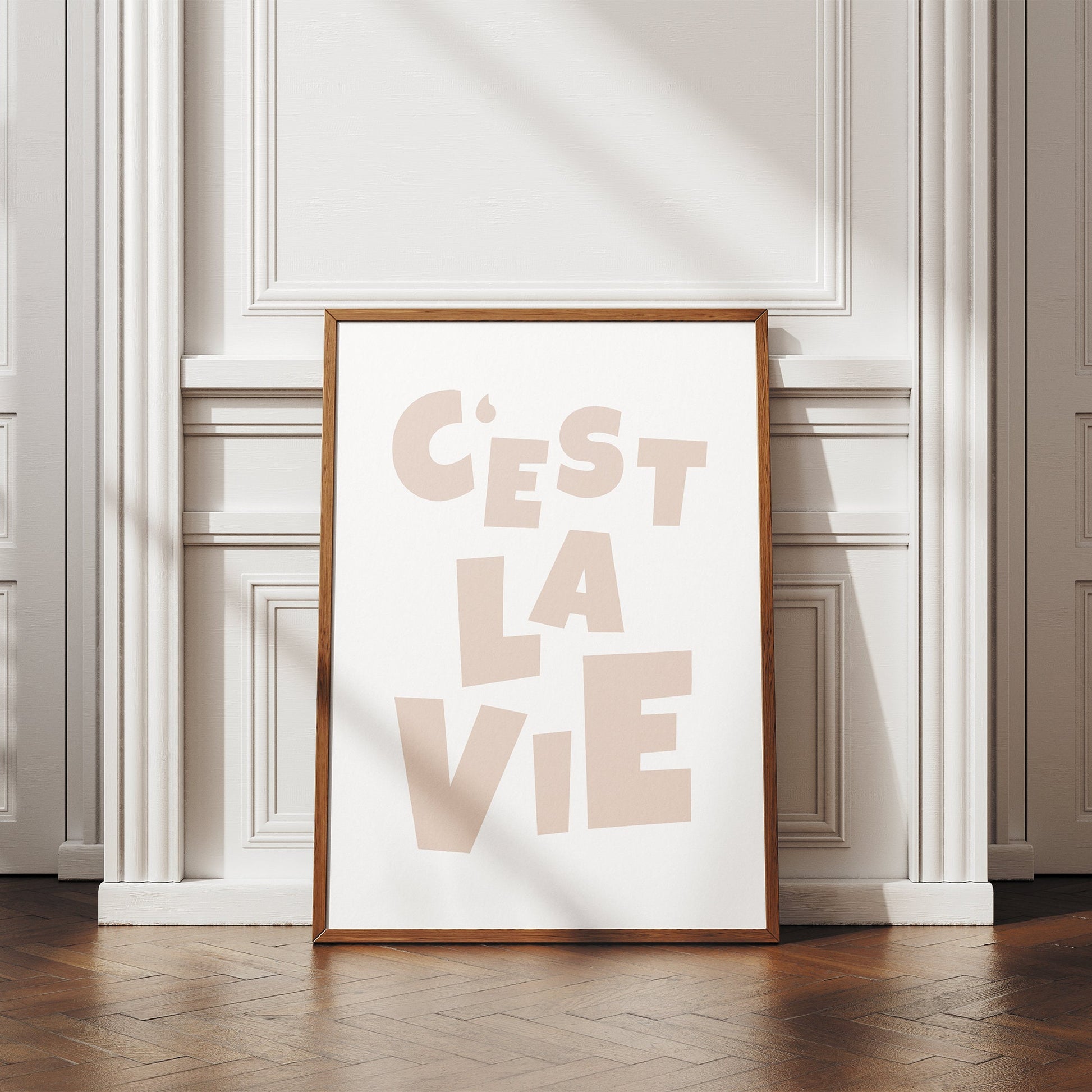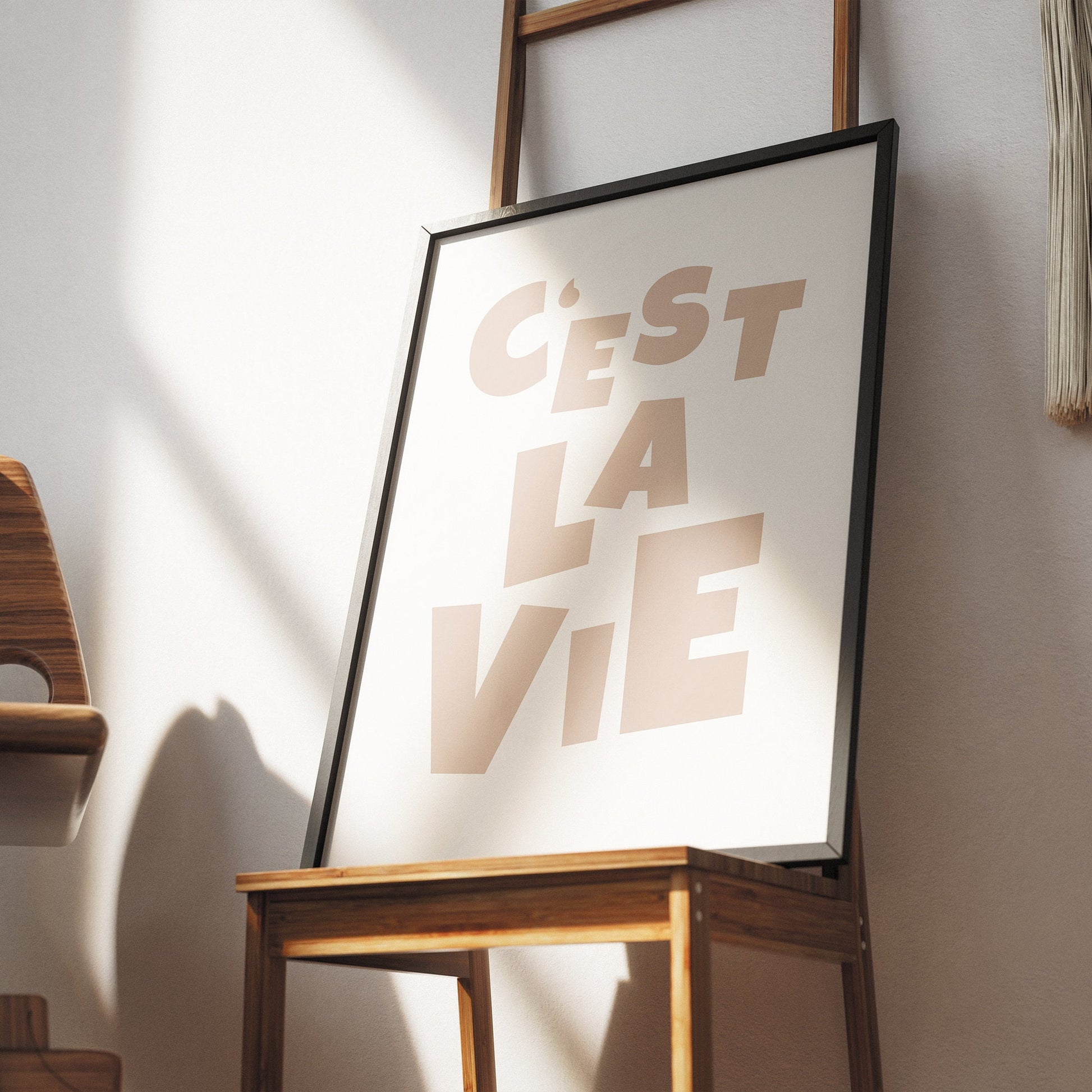 C'est La Vie - Block & Beige Print: French Quote Poster, Wall Art, Affirmation Gift, Living Room Home Decor, Such Is Life, Modern Typography