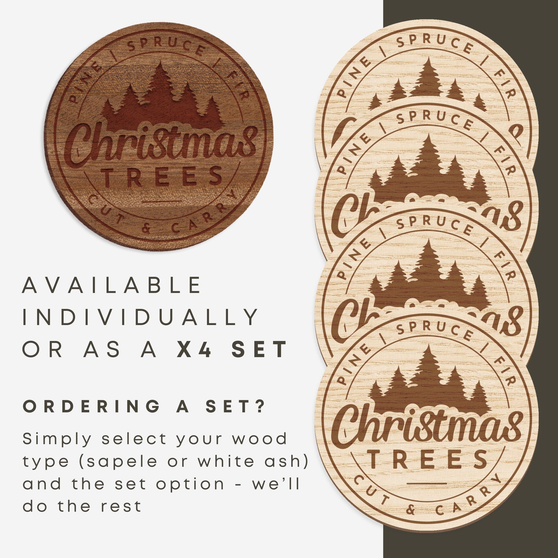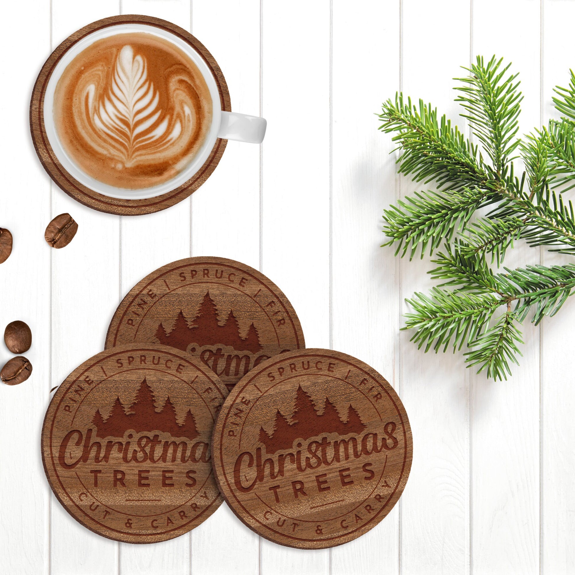 Christmas Tree Farm Coaster - Christmas Themed Drinks Mat, Xmas Coasters, Rustic Christmas Home Decor Coaster Gift Set, Home Gift