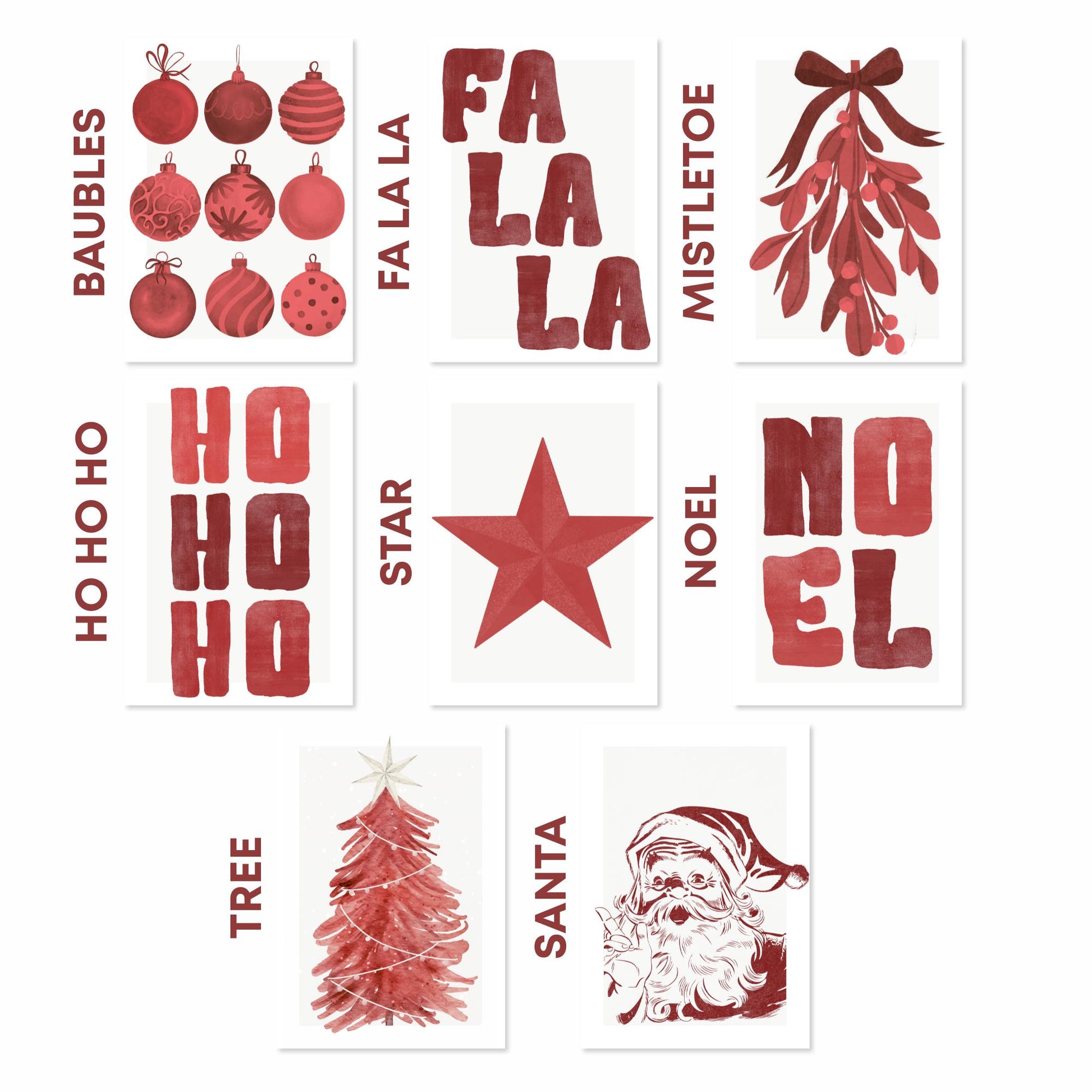 Create a calm and stylish festive atmosphere with this beautiful Red Christmas Wall Art Collection. Each print blends minimalist design with timeless Christmas charm, featuring soft red hues and painterly textures that complement any interior. Choose from eight unique designs — or mix and match to curate your own Christmas gallery wall. Printed on premium gloss paper, these high-quality art prints are perfect for adding a subtle, elegant touch of Christmas spirit to your home.