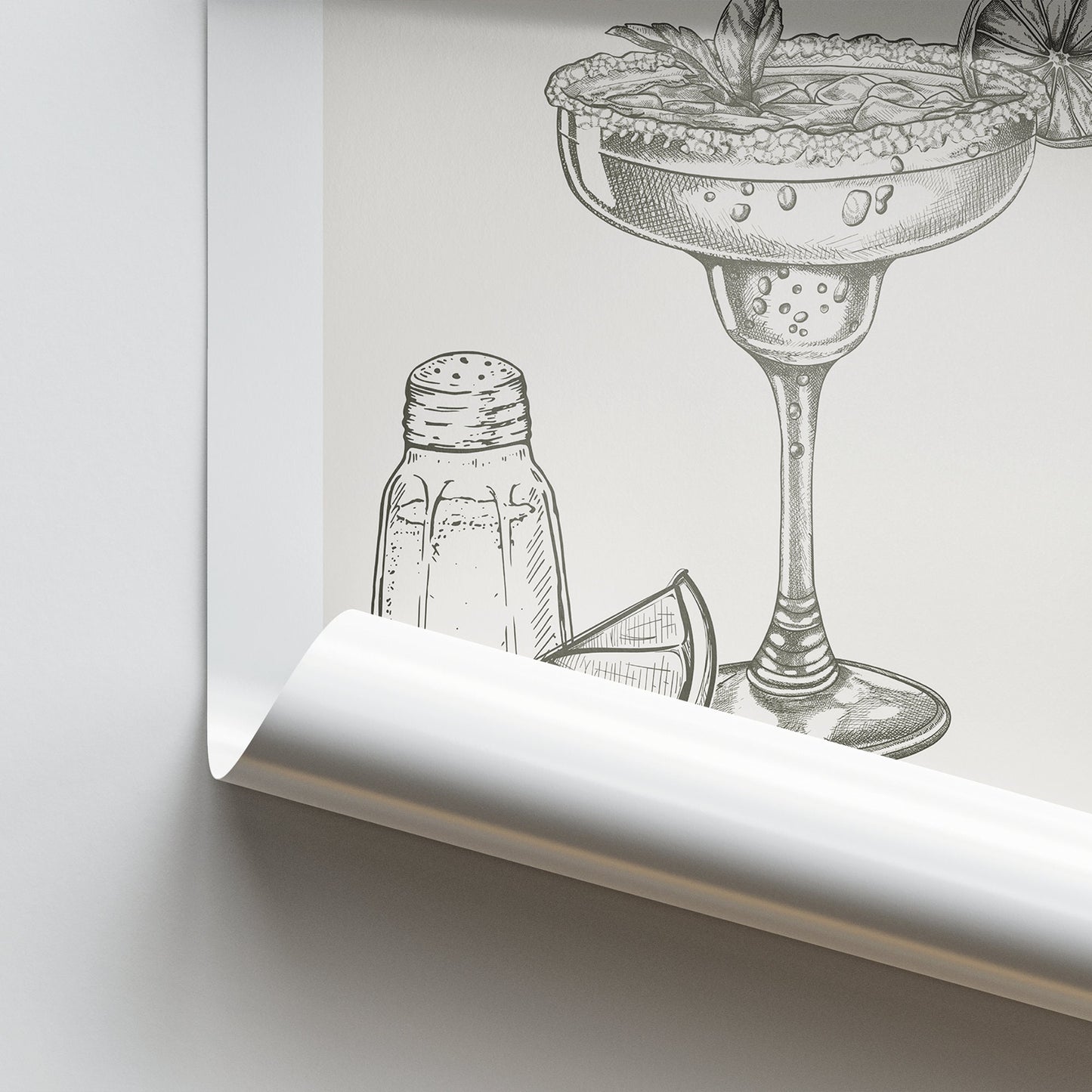 Indulge in the vibrant flavours of Mexico with an illustrated Margarita Cocktail Poster celebrating the iconic drink. Perfect for Margarita enthusiasts or cocktail culture admirers, this high-quality poster adds summer vibes to any space with its detailed illustration of lime, tequila, and salt-rimmed glass. Ideal for home bars or kitchens, it brings a touch of paradise and makes a great gift for friends. Cheers to good times with this festive artwork!