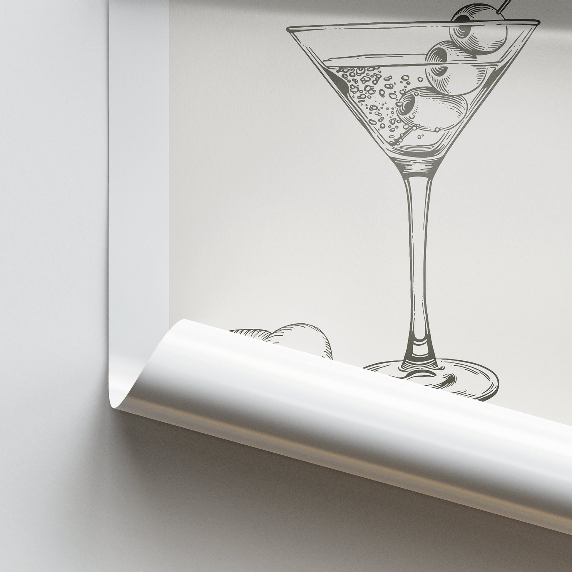 Discover sophistication with the Illustrated Martini Cocktail Poster, depicting the essence of the classic cocktail with intricate precision. This premium poster highlights the craftsmanship involved in Martini-making, making it a timeless decor piece for cocktail lovers and bartenders.