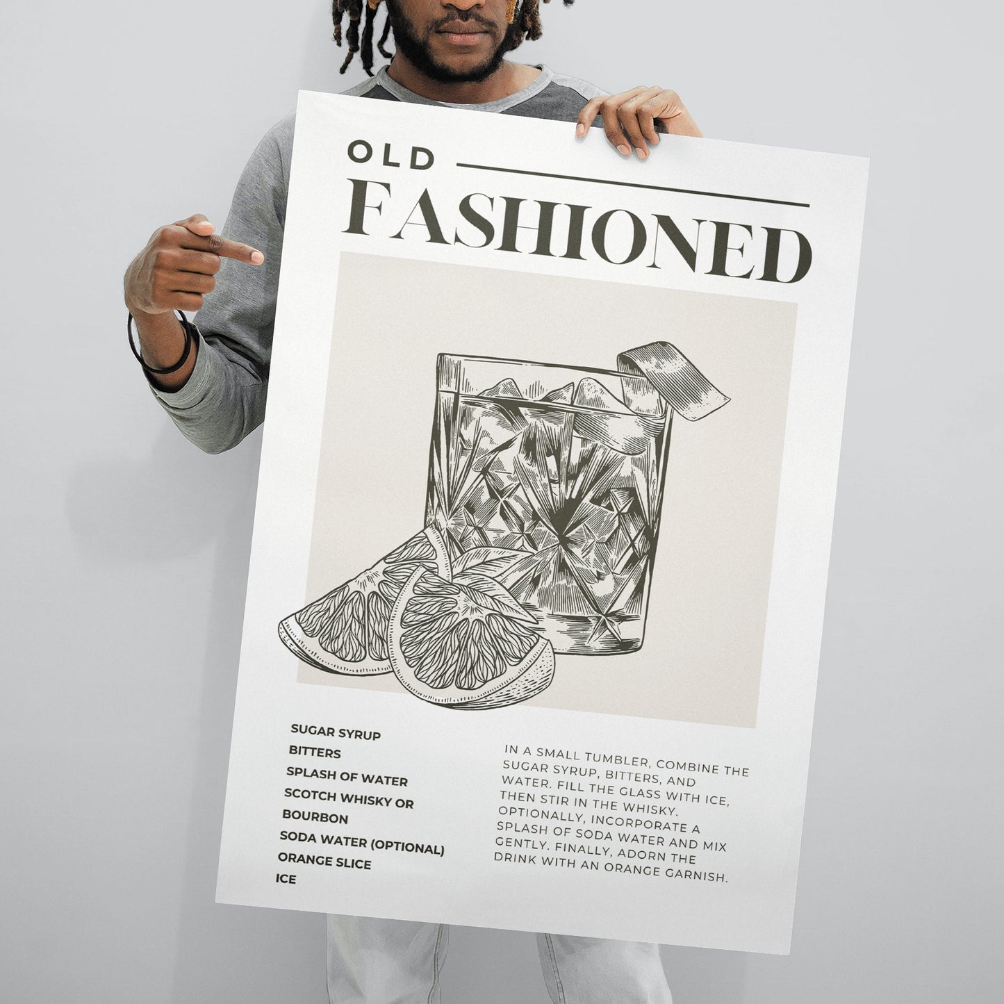 Cocktail Making - Old Fashioned Poster: Home Bar, Modern Home Decor, Cool Cocktail Print, Kitchen Decor, Wall Art, Cocktail Lover Gift