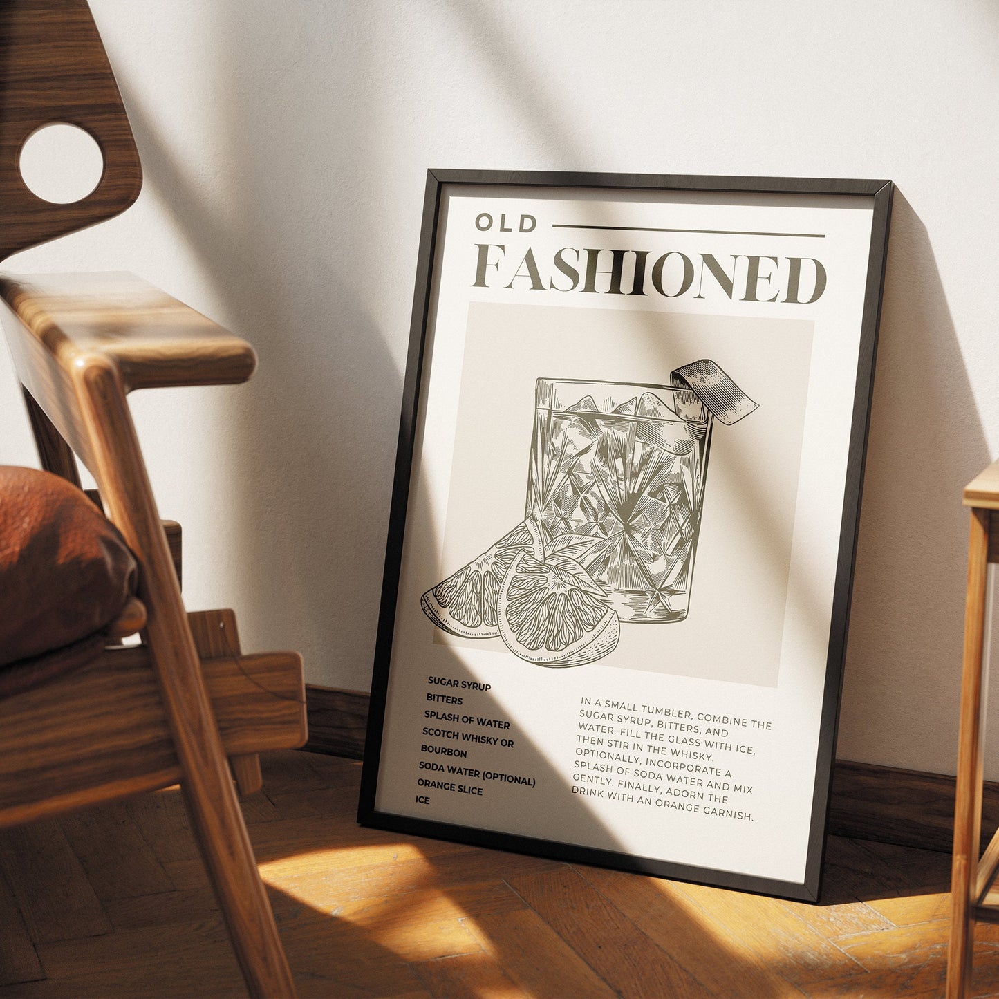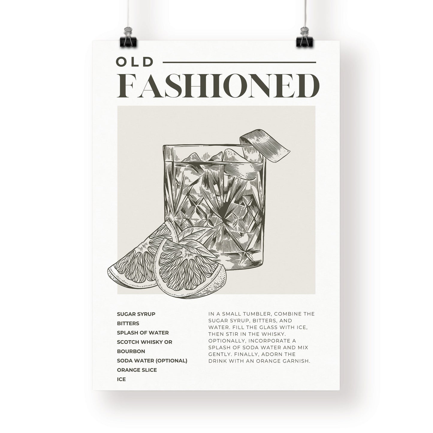 Elevate your home bar with our beautifully illustrated Old Fashioned cocktail poster. Featuring exquisite detail, this poster adds a touch of vintage charm to any space. Whether you‘re a cocktail enthusiast or simply appreciate timeless elegance, this poster is sure to impress. Printed on high-quality paper, it‘s the perfect addition to your kitchen, dining room, or bar area. Treat yourself or surprise the cocktail lover in your life with this stunning piece of art. Cheers to style and sophistication!