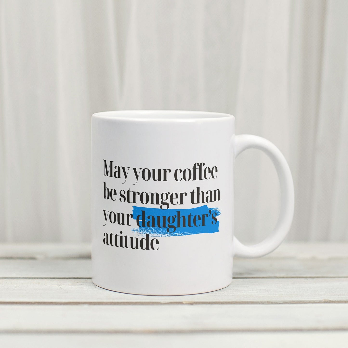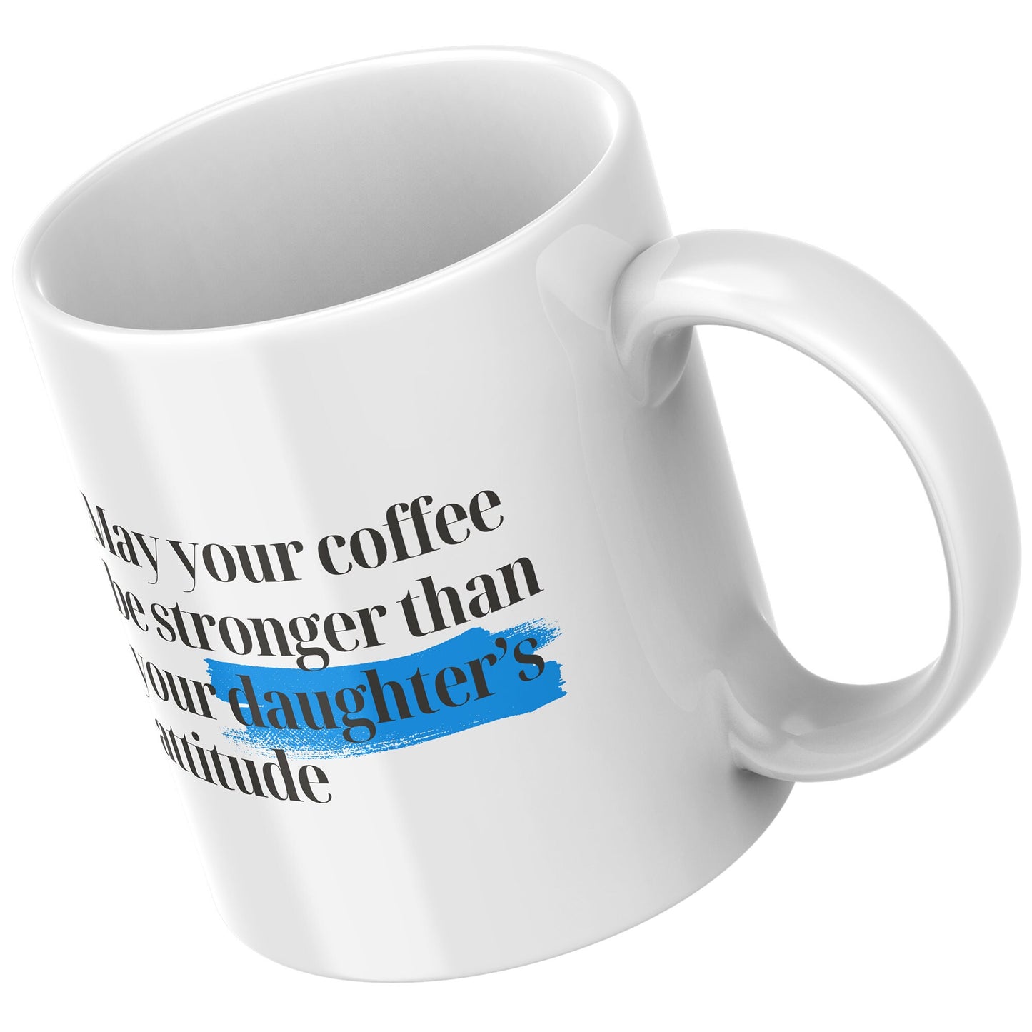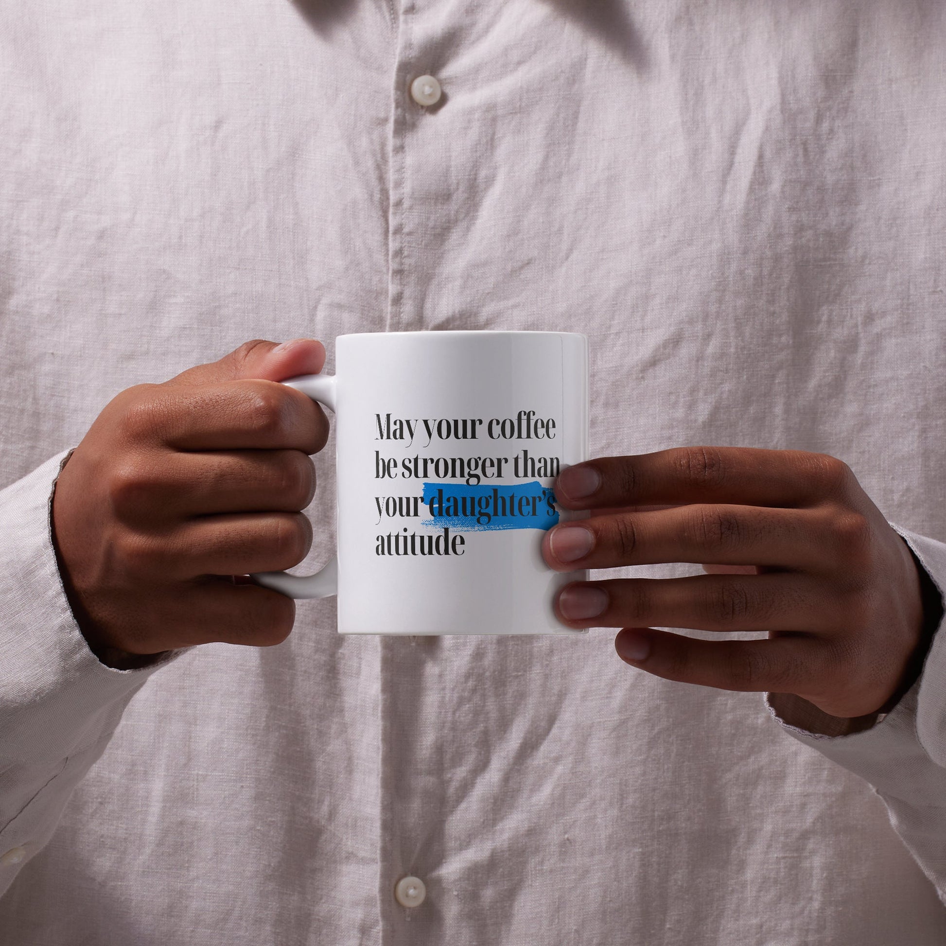 Coffee Stronger Than Your Daughter's Attitude - Blue: Unique Gift for Dad, Small Gift For Father's Day, Humour Mug, Perfect Funny Joke Gift