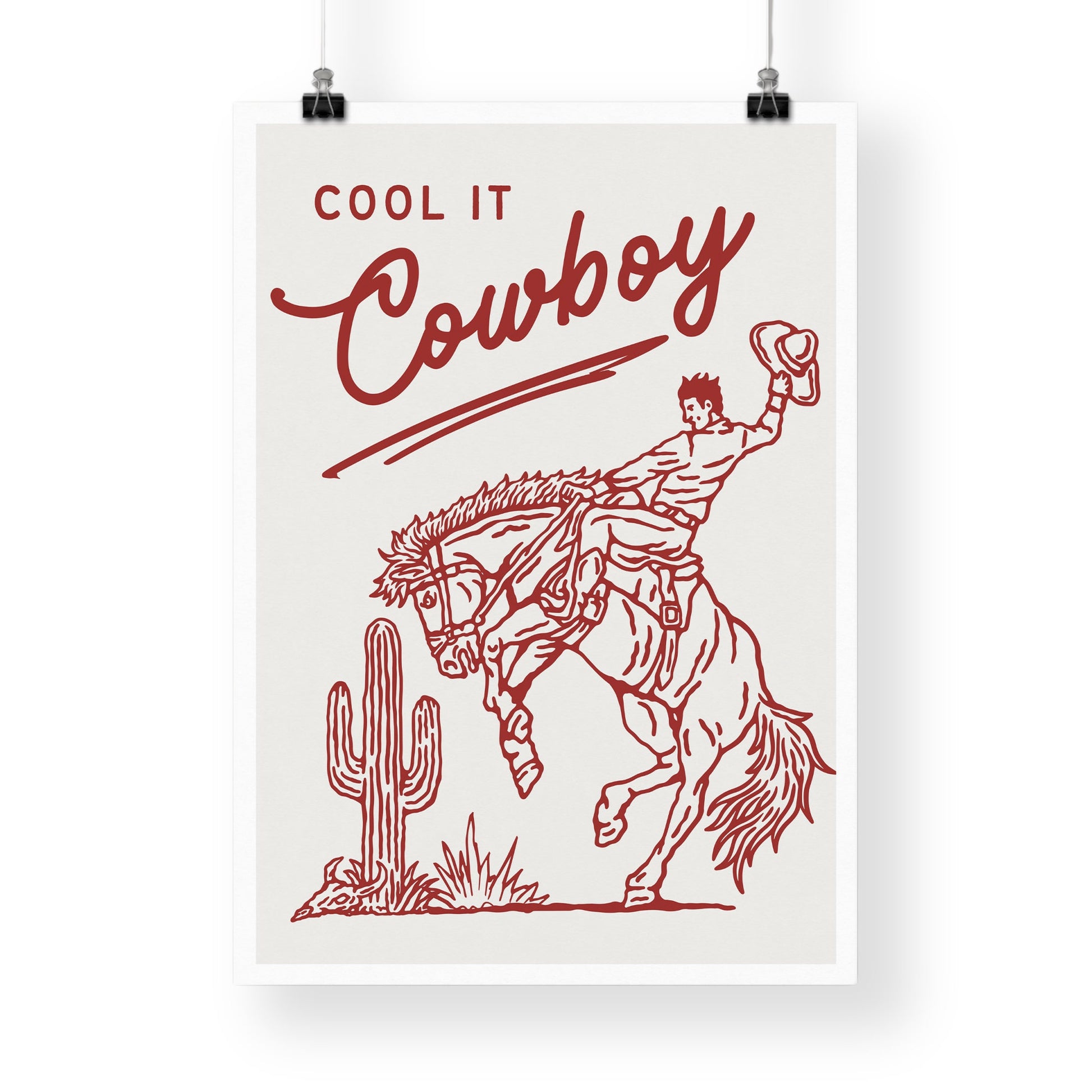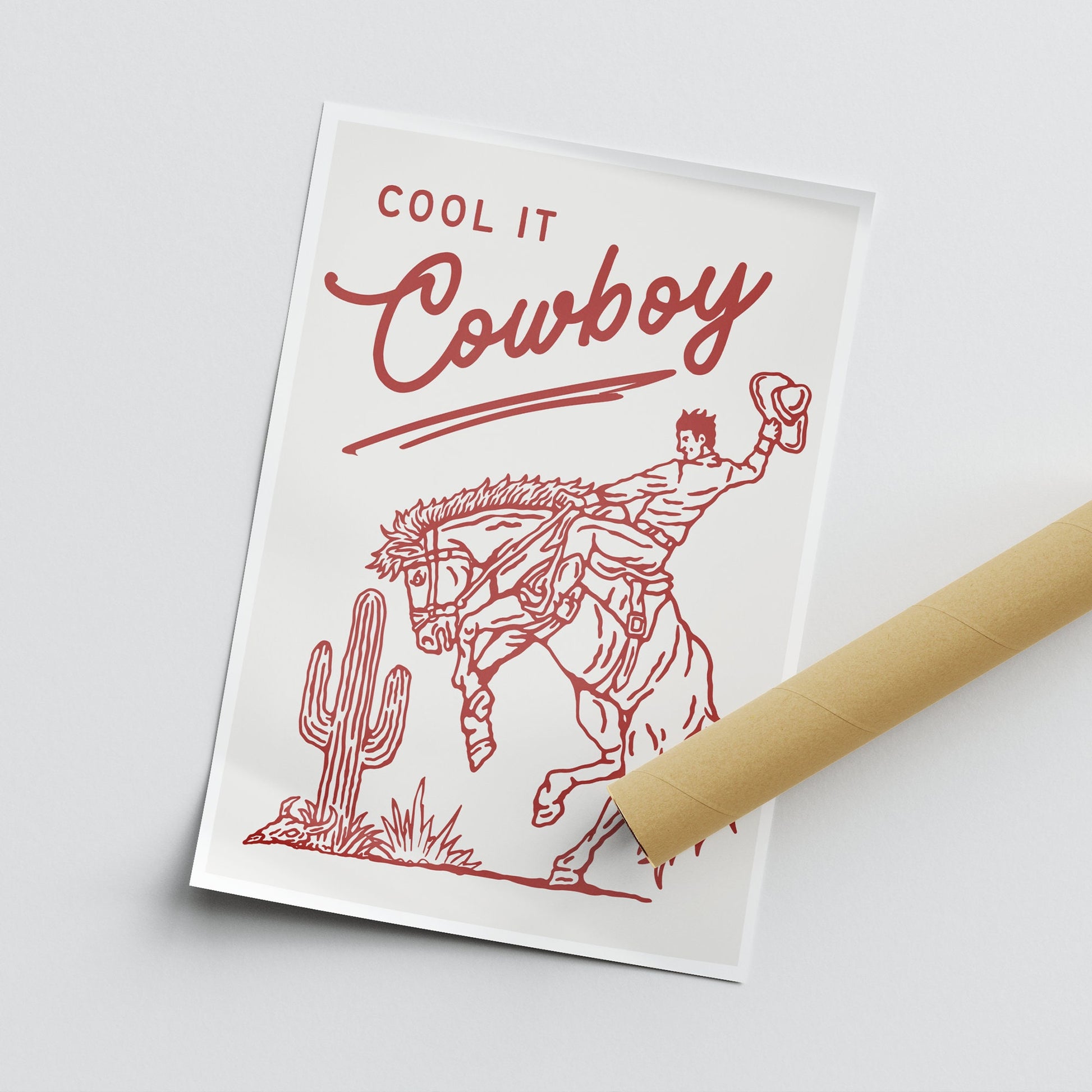 Bring a touch of the Wild West into your home with our "Cool It Cowboy" quote poster. Perfect for adding a rustic yet modern vibe to any space, this stylish wall art blends a cool cowboy aesthetic with clean typography. Ideal for living rooms, bedrooms, home offices, or any area in need of a Western-inspired touch.