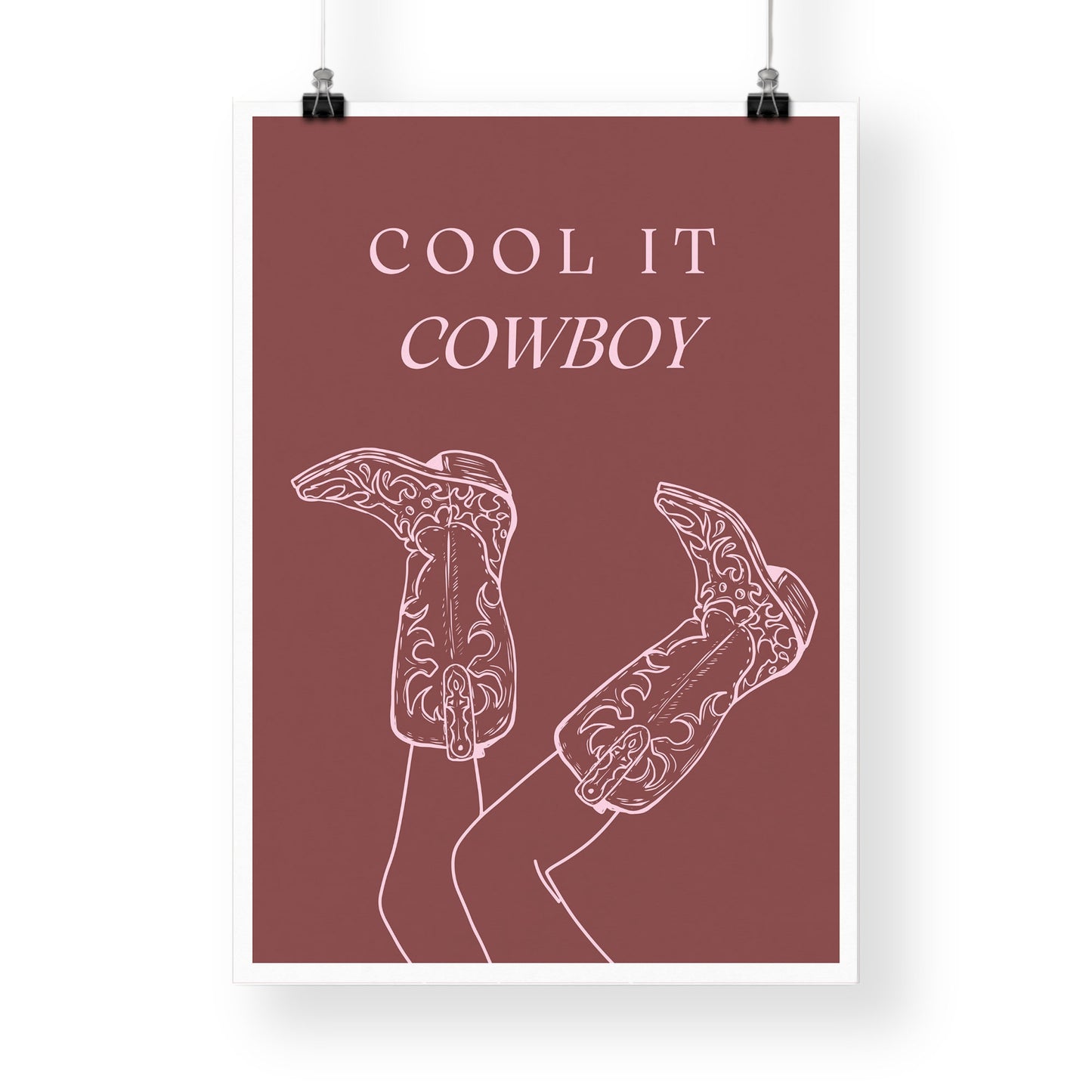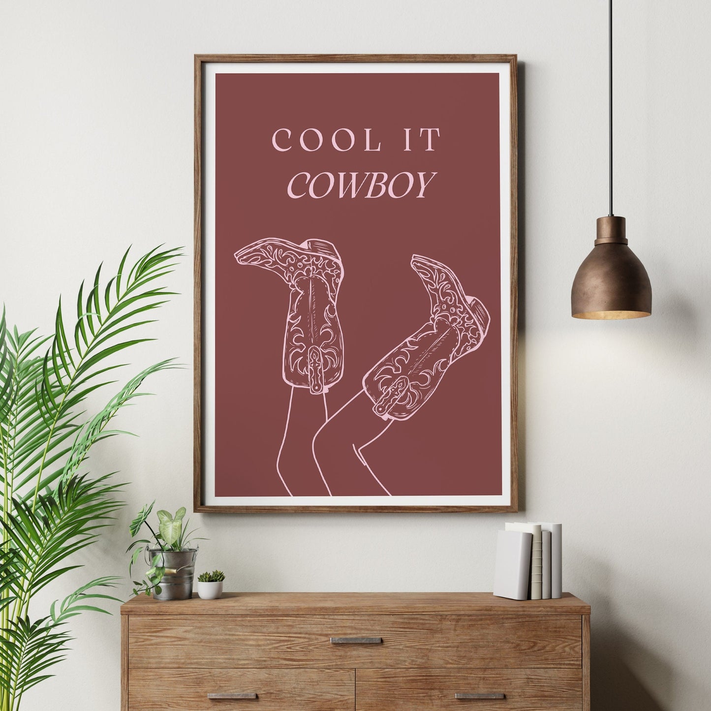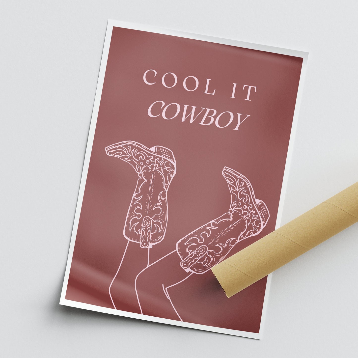Bring a touch of the Wild West into your home with our "Cool It Cowboy" quote poster. Perfect for adding a rustic yet modern vibe to any space, this stylish wall art blends a cool cowboy aesthetic with clean typography. Ideal for living rooms, bedrooms, home offices, or any area in need of a Western-inspired touch.