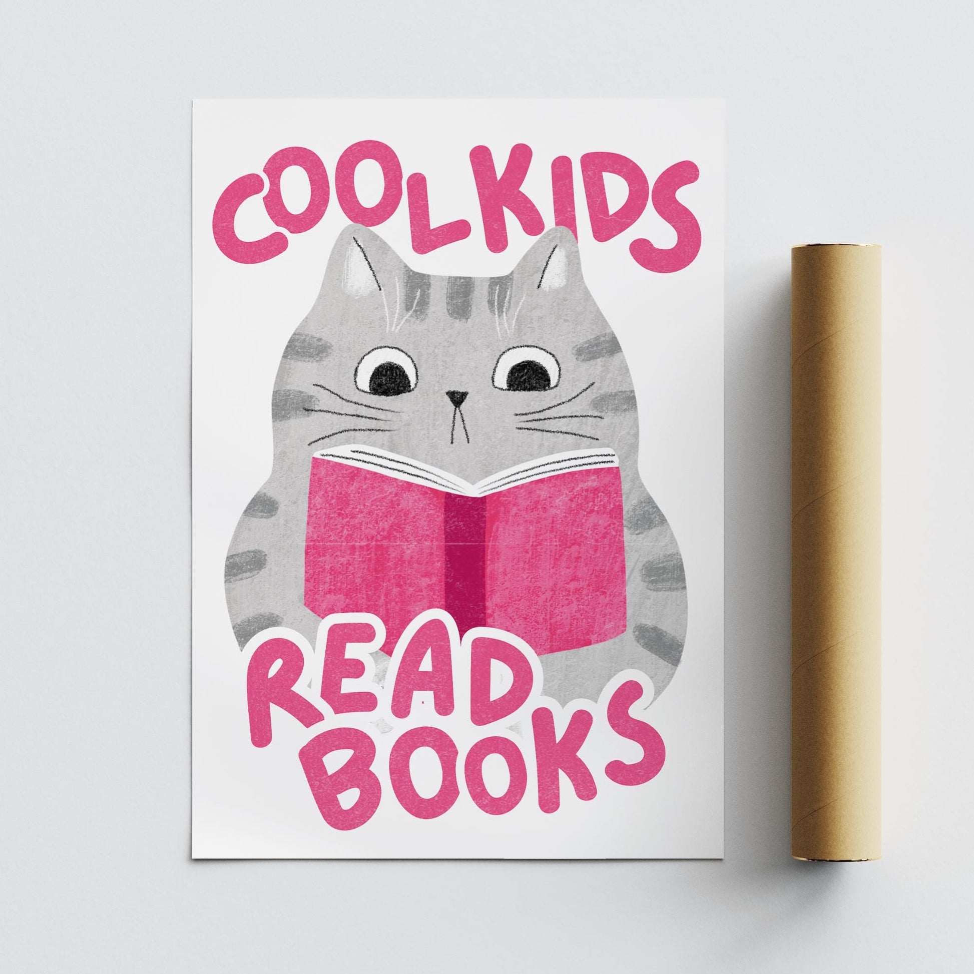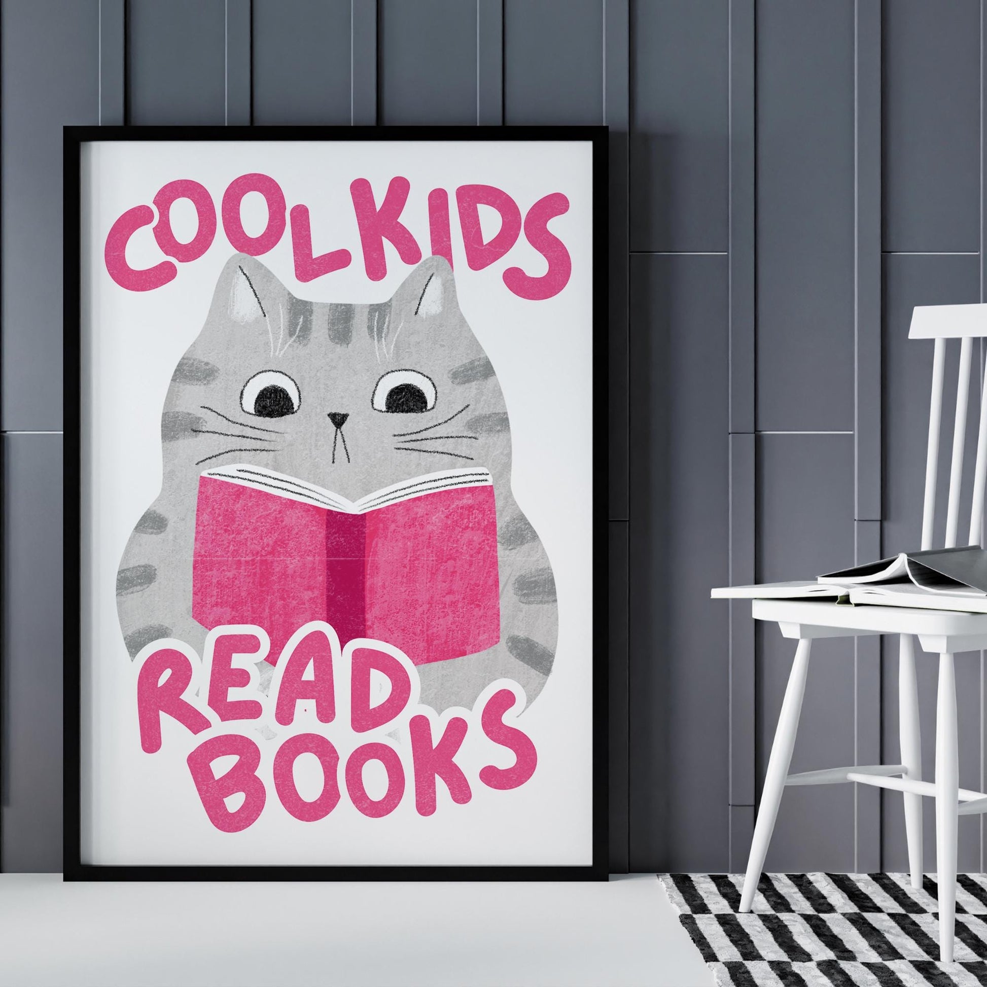 Cool Kids Read Books - Cat Poster: Typography Print For Children, Book Lover Quote Wall Art for Reading Corner, Bedrooms & Playrooms