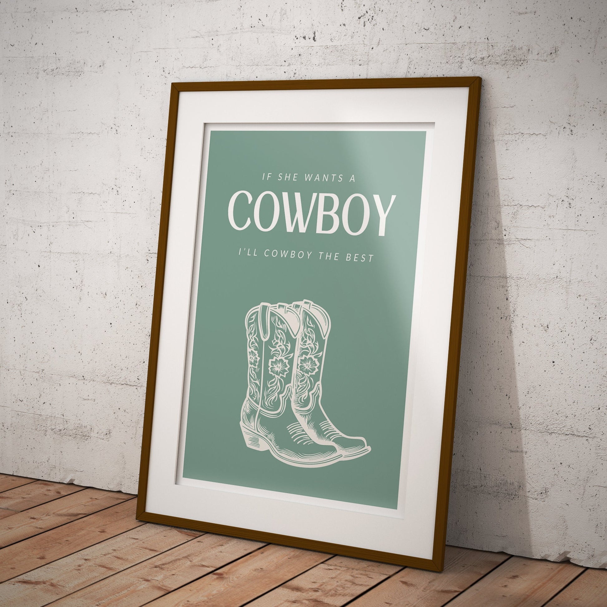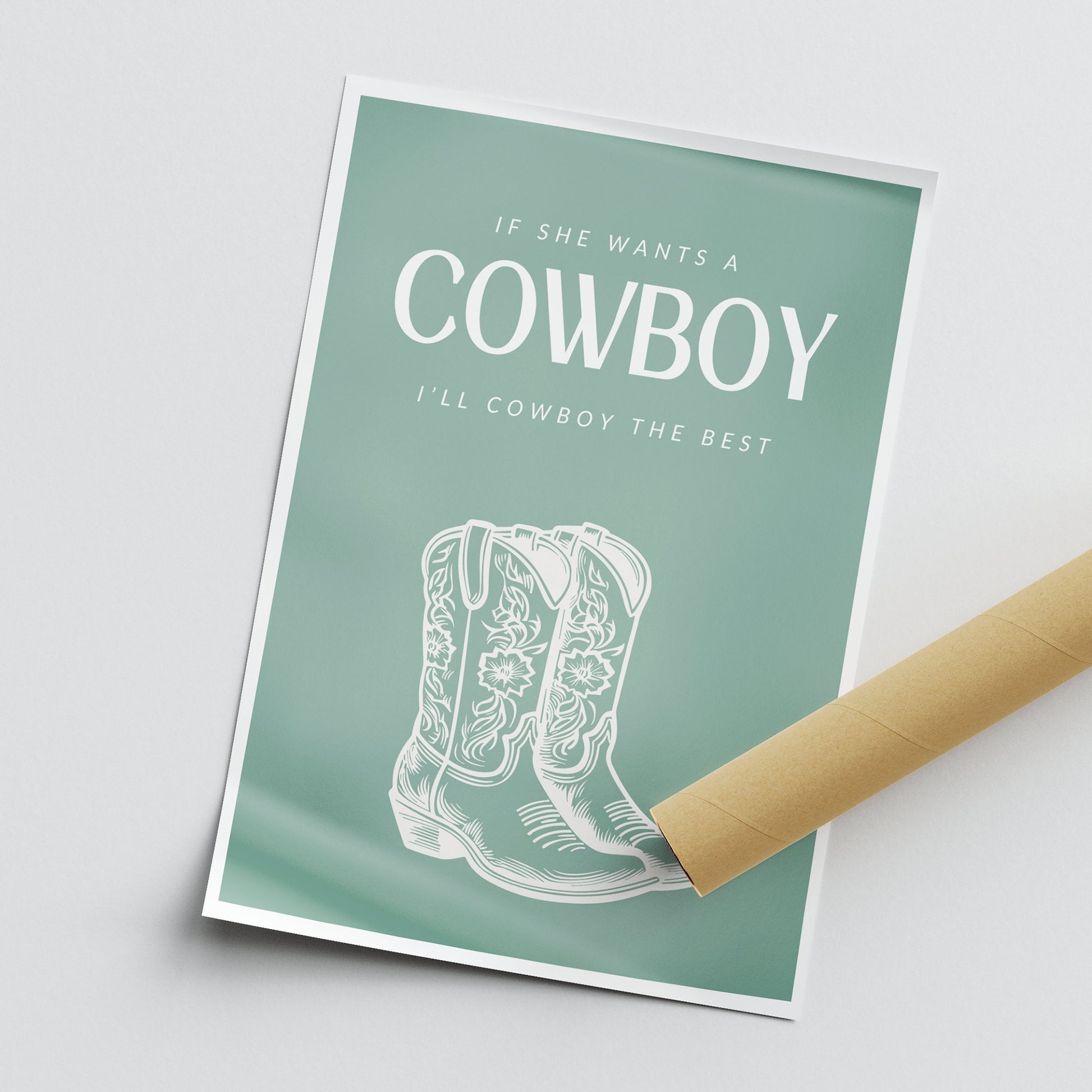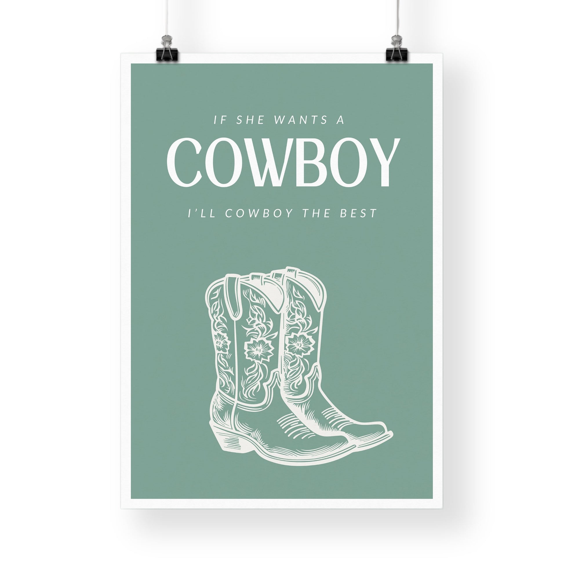 Embrace the spirit of love and country charm with our "If She Wants a Cowboy, I‘ll Cowboy the Best" quote poster, inspired by the soulful lyrics of Zach Bryan. This rustic and romantic country-style poster is perfect for adding a touch of warmth and authenticity to your home. Ideal for couples, music enthusiasts, and country music fans, this wall art piece makes a thoughtful gift or a beautiful addition to any space.