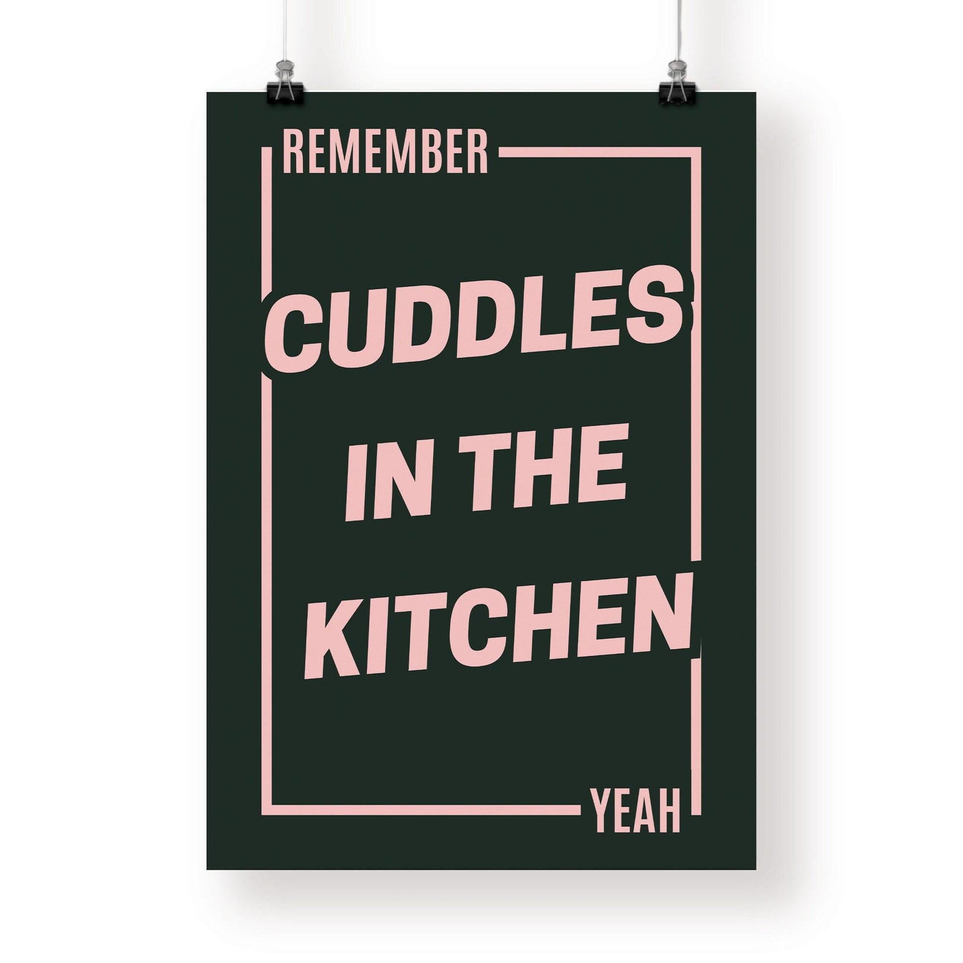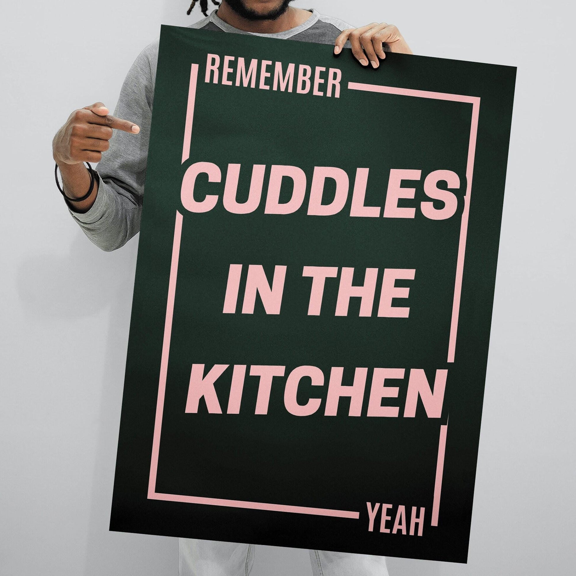 Cuddles in the kitchen - green poster: music inspired print, unique home decor, cool wall art, high-quality print, kitchen quote poster