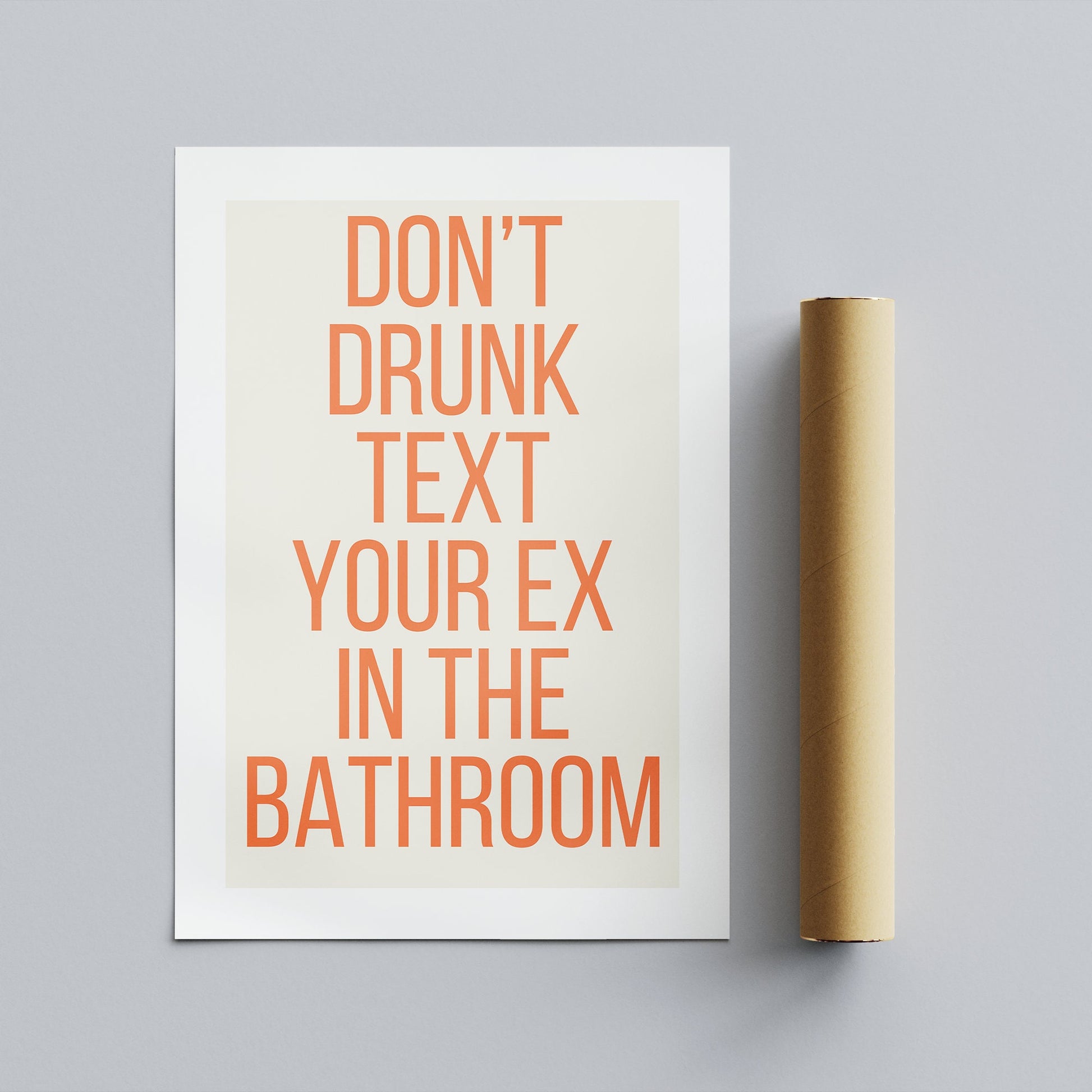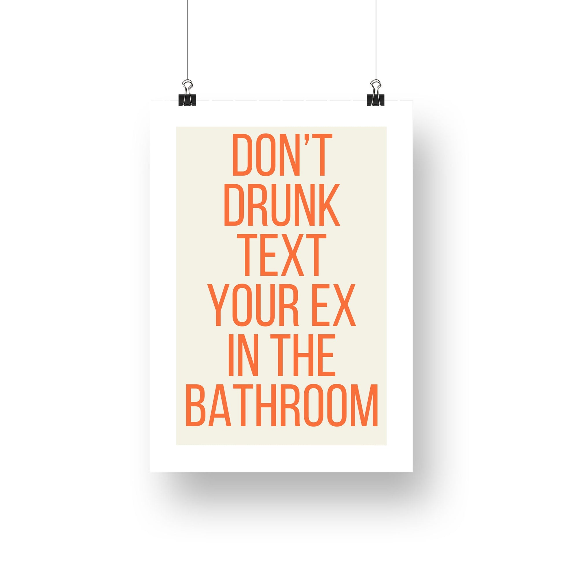 Dont Drunk Text Your Ex In The Bathroom Poster: Unique Bathroom Print, Toilet Poster, Bathroom Wall Art, Cool Funny Home Decor, Fun Toilet
