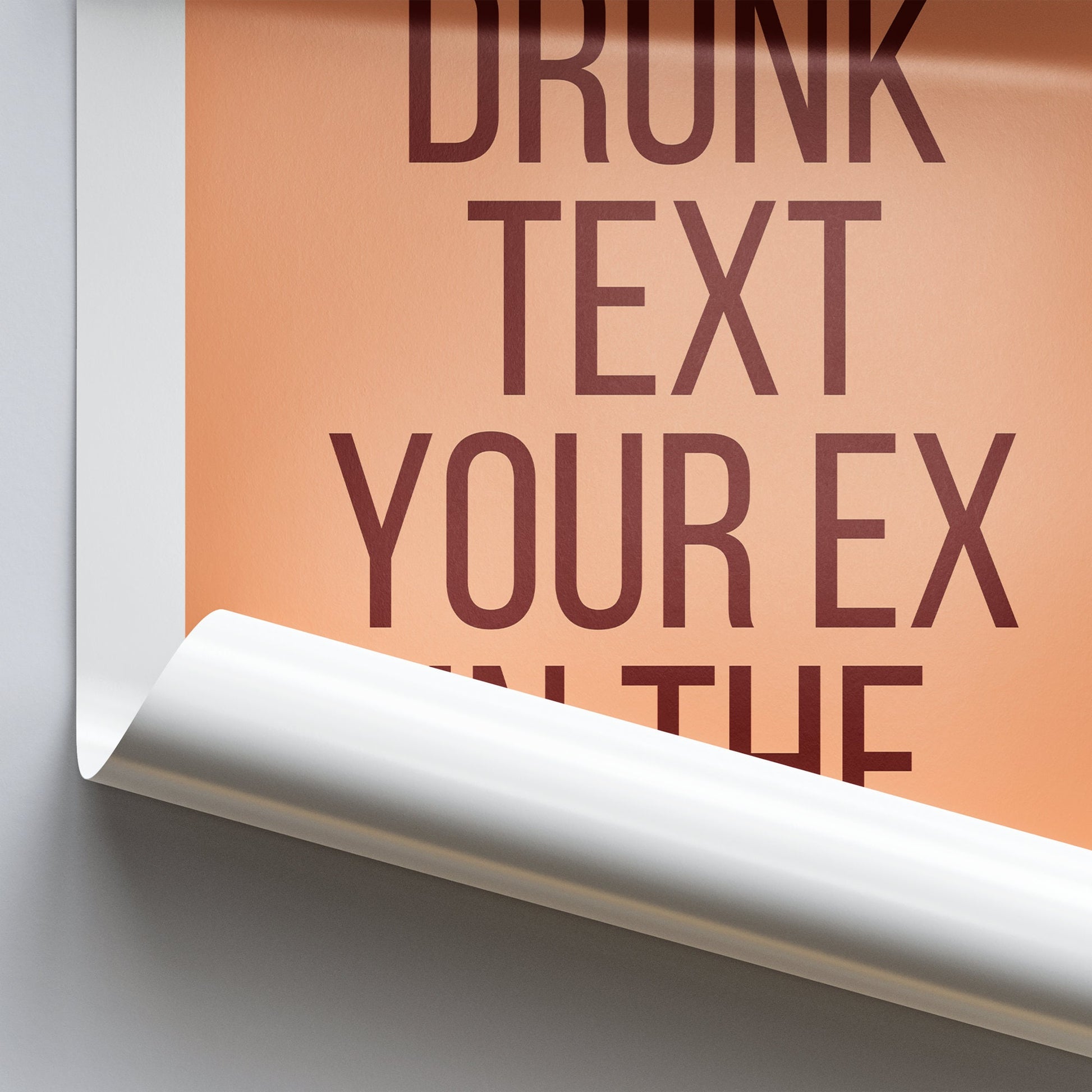 Add a touch of humour and a dash of wisdom to your space with our "Don‘t Text Your Ex in the Bathroom" poster. This quirky and fun art print serves as a playful reminder to make better choices, even in the most private moments.