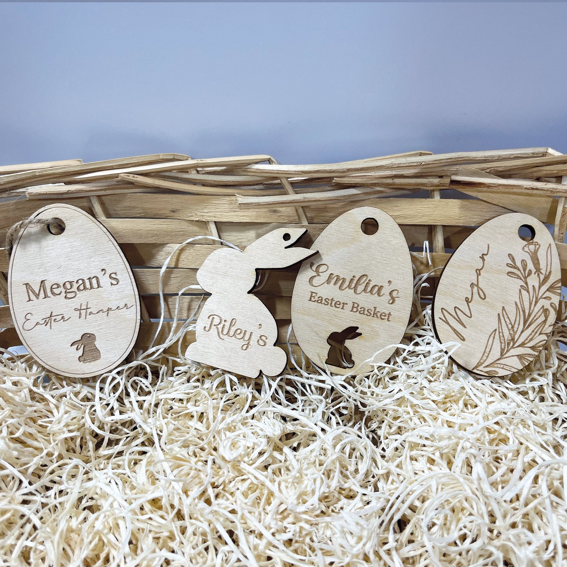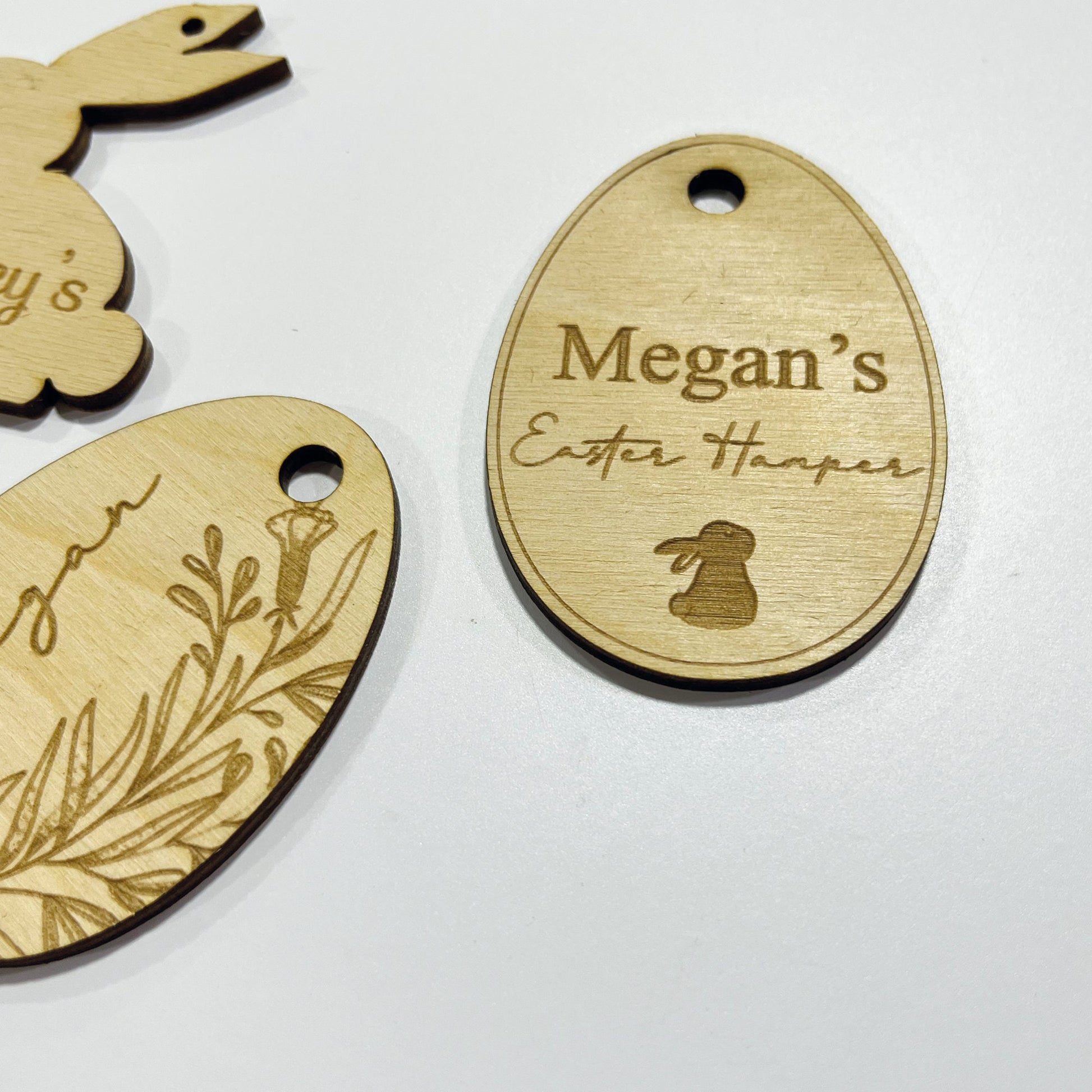 Wooden Easter tags that are a perfect personalisation to your Easter Hamper / Basket.