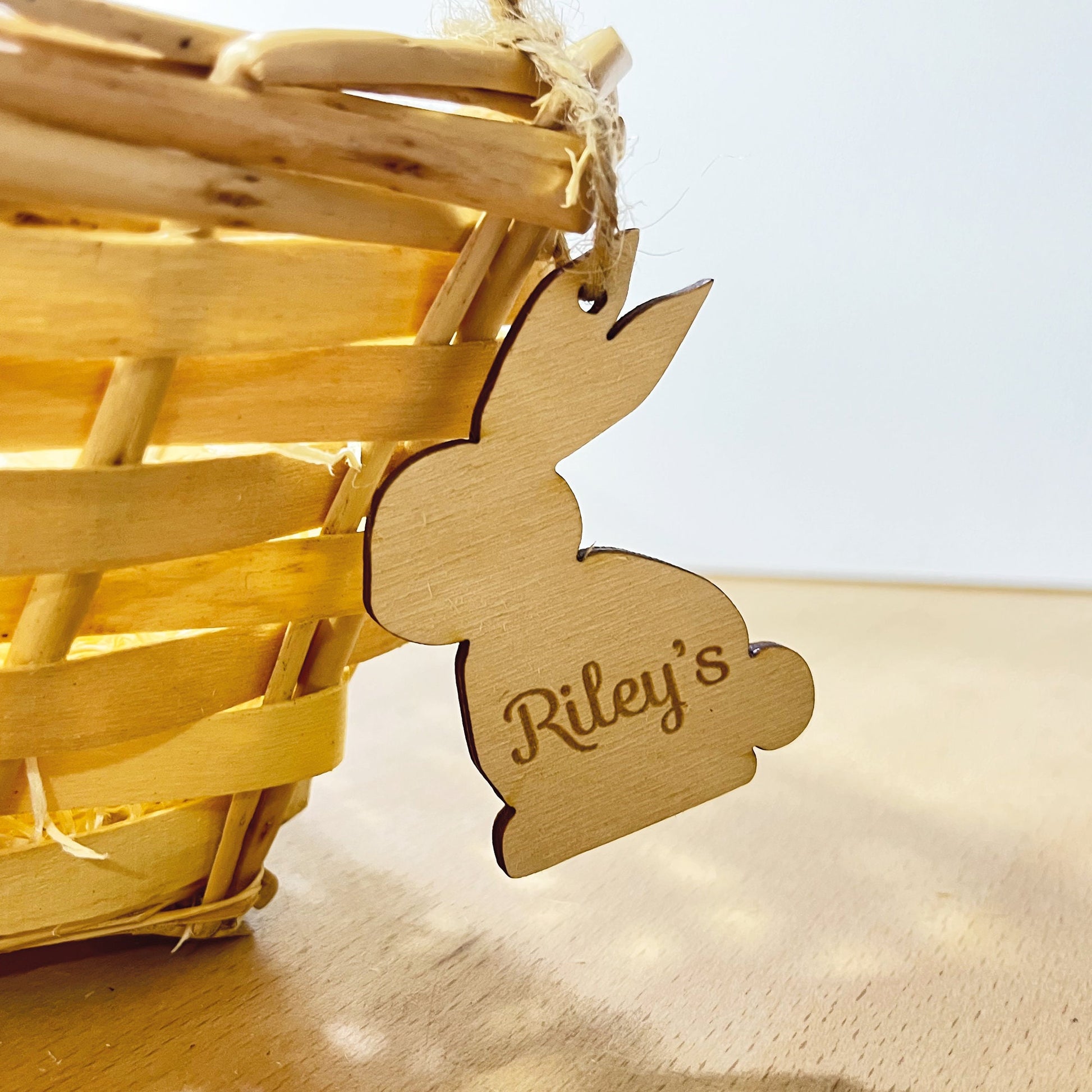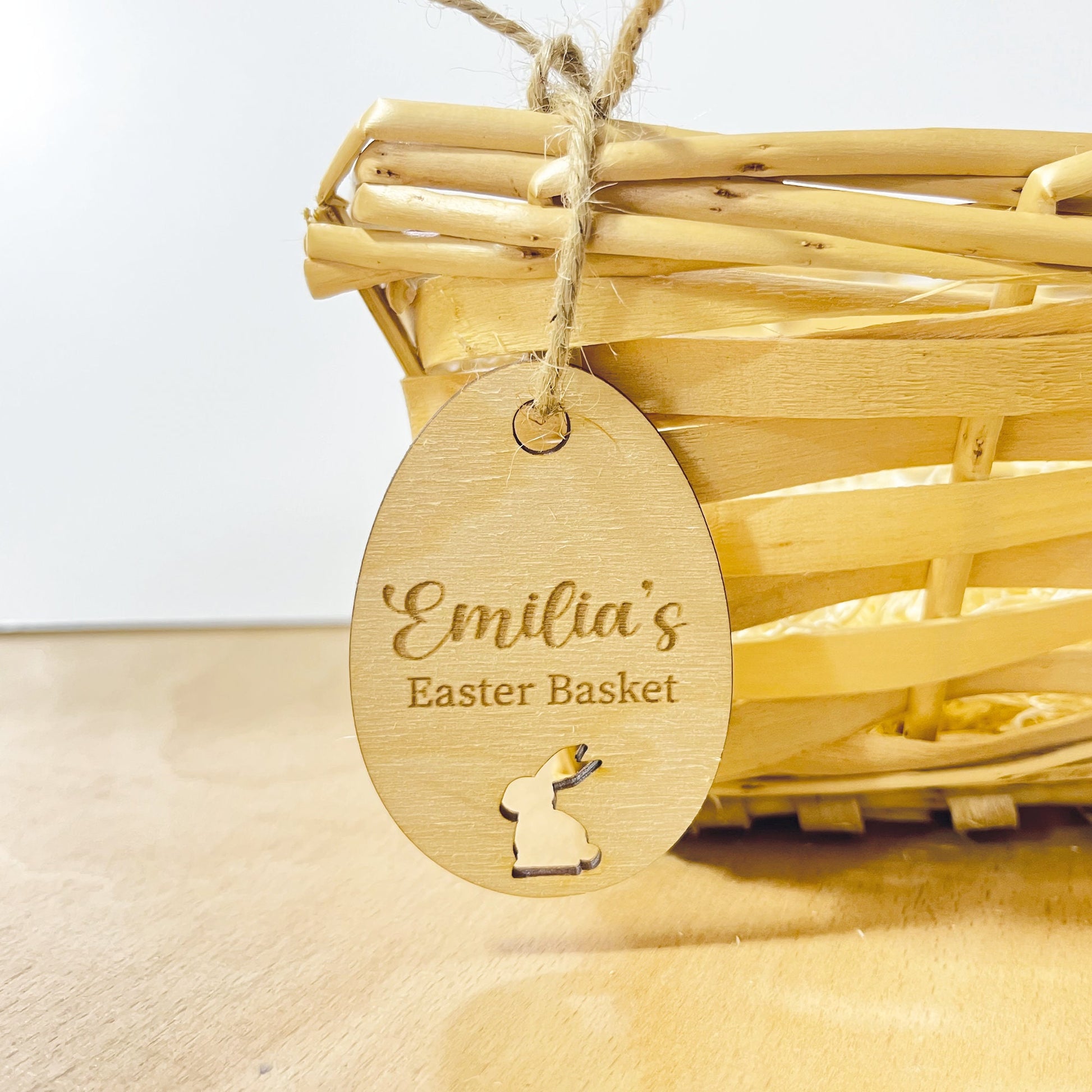Easter Bunny Basket Name Tag Personalised Wooden Label Basket Tag
