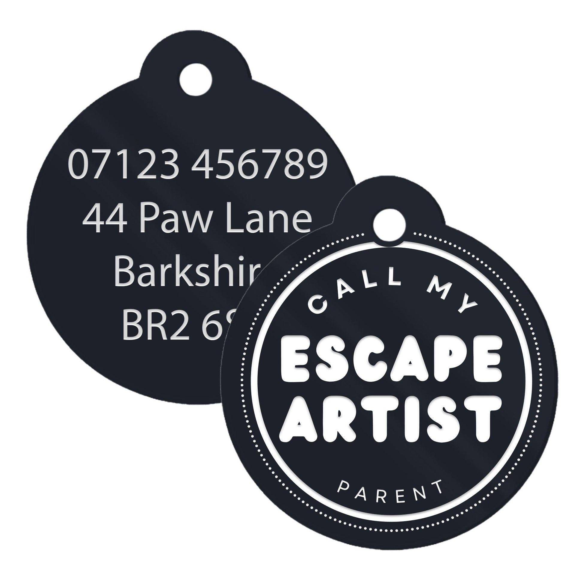 Escape Artist - Dots, Personalised Dog ID Collar Tag: Funny Custom Pet Safety Accessories, New Pet Essentials, Unique Gift For Dog