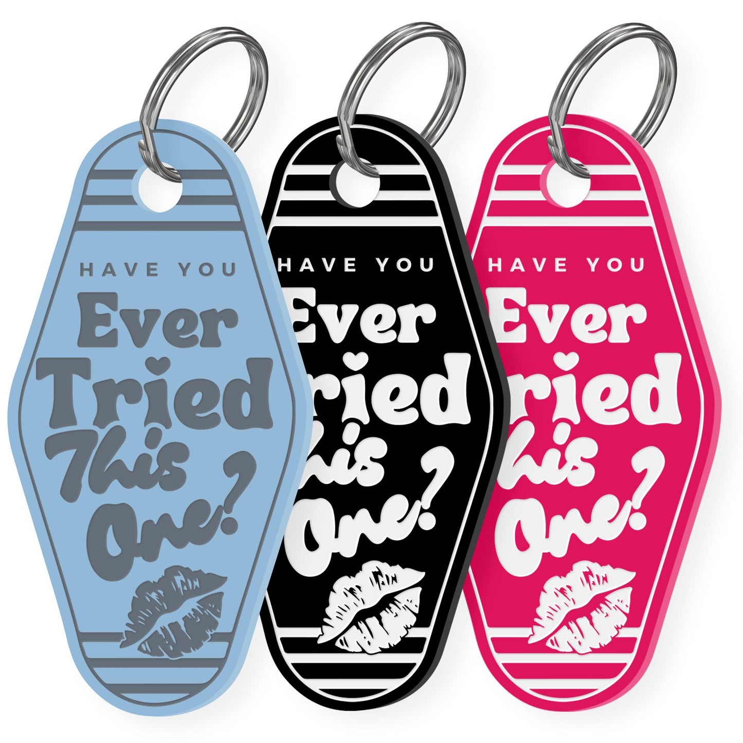 Channel the cheeky and playful vibe of Sabrina Carpenters hit song "Juno" with this "Have You Ever Tried This One?" motel-style acrylic keyring. This retro-inspired design, featuring bold lettering and fun motifs, is the perfect accessory for music lovers who love to express their personality with unique style.