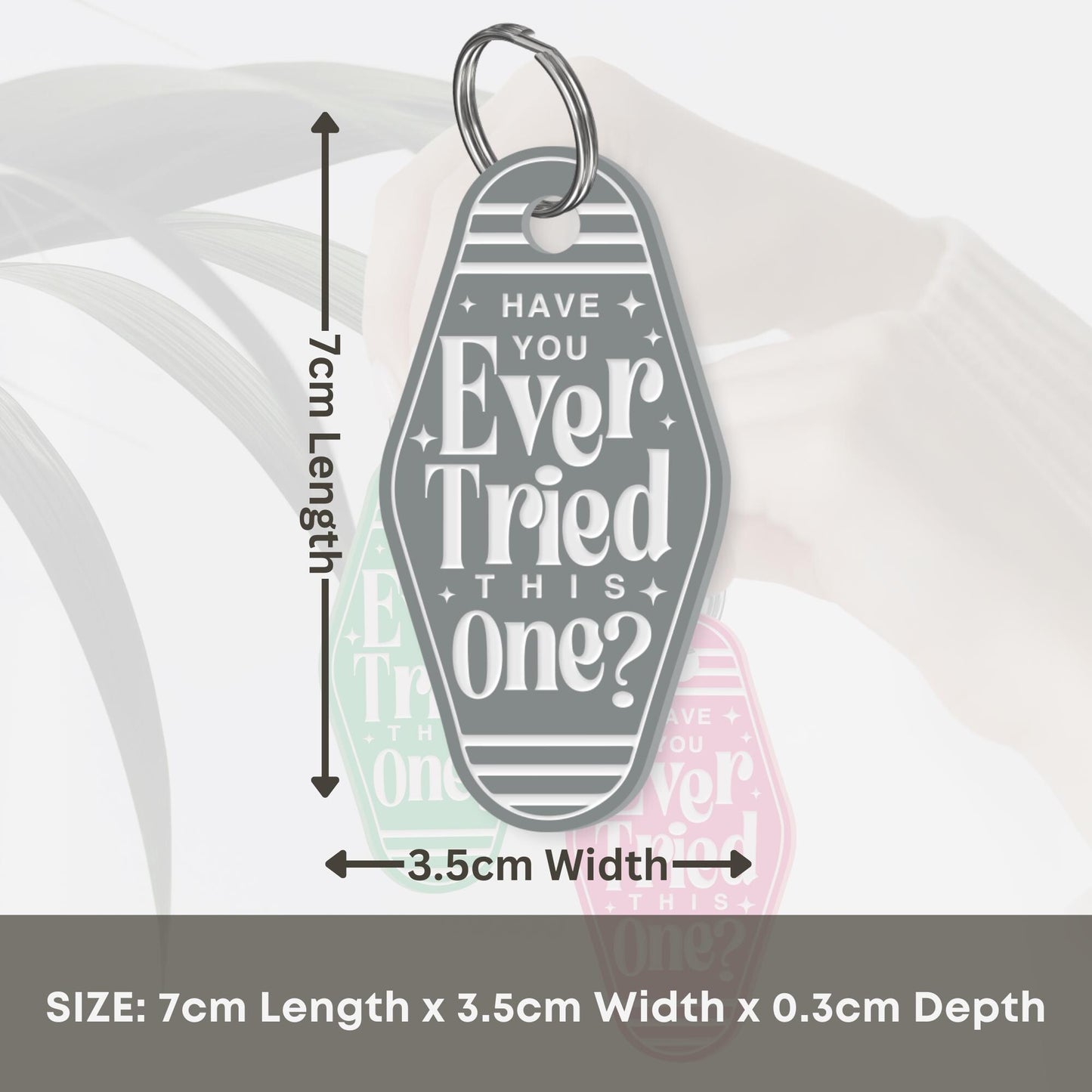 Own a piece of retro charm and modern music inspiration with this "Have You Ever Tried This One?" keyring. Its the perfect mix of nostalgia and personality!