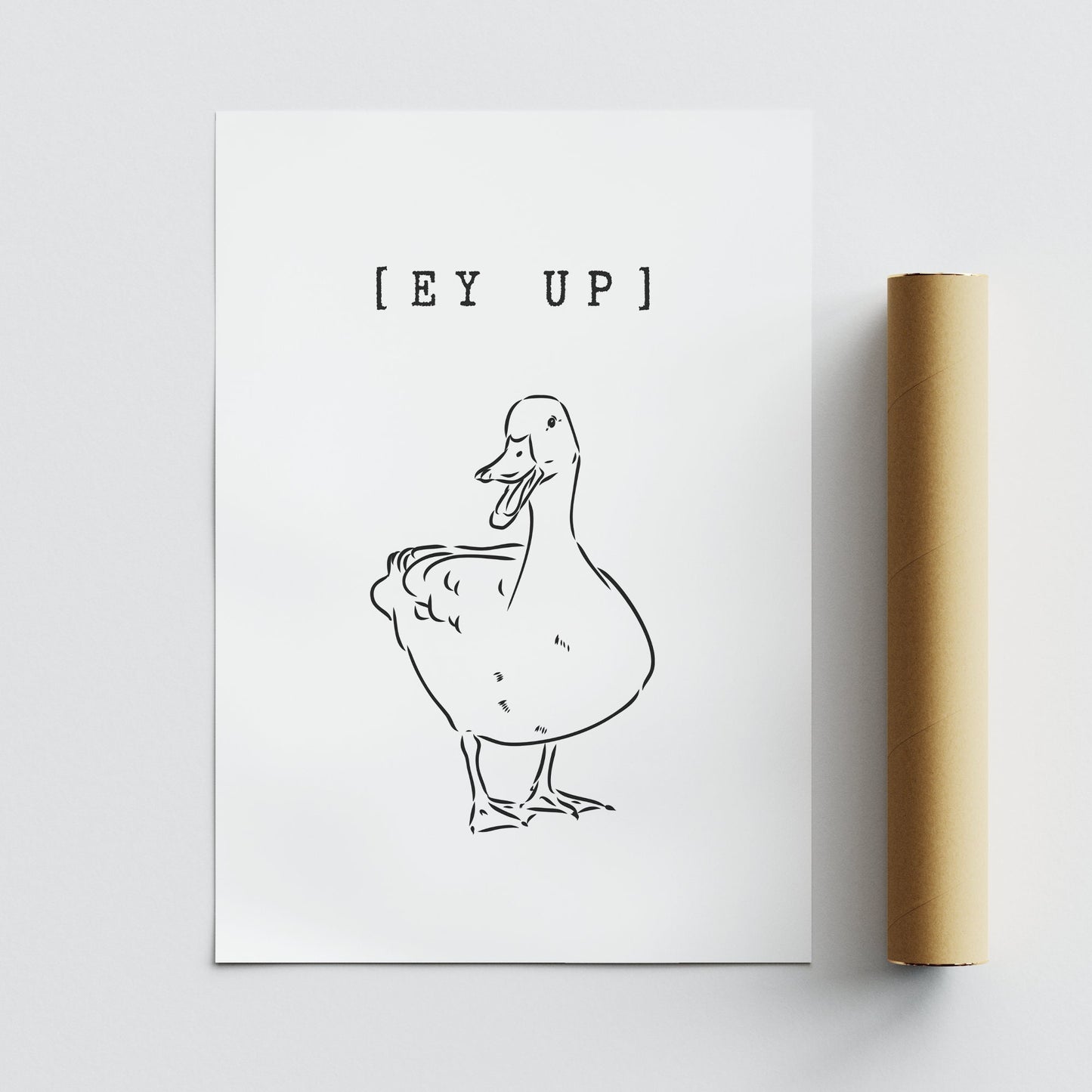 Ey Up Duck 04 Poster: Northern-Inspired Quote Poster, Charming Wall Art, Bold Home Decor, Yorkshire Print, Living Room Decor, Cool Prints
