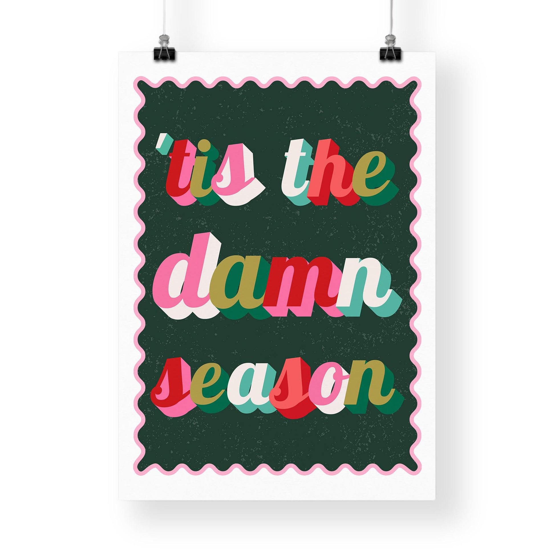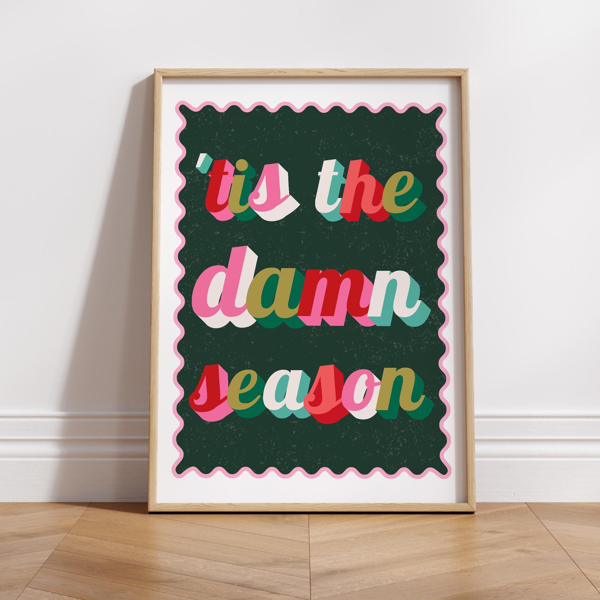 Festive Lyric-Inspired Poster "Tis The Damn Season" Print 05 | Colourful Retro Christmas Typography Wall Art | Seasonal Home Decor