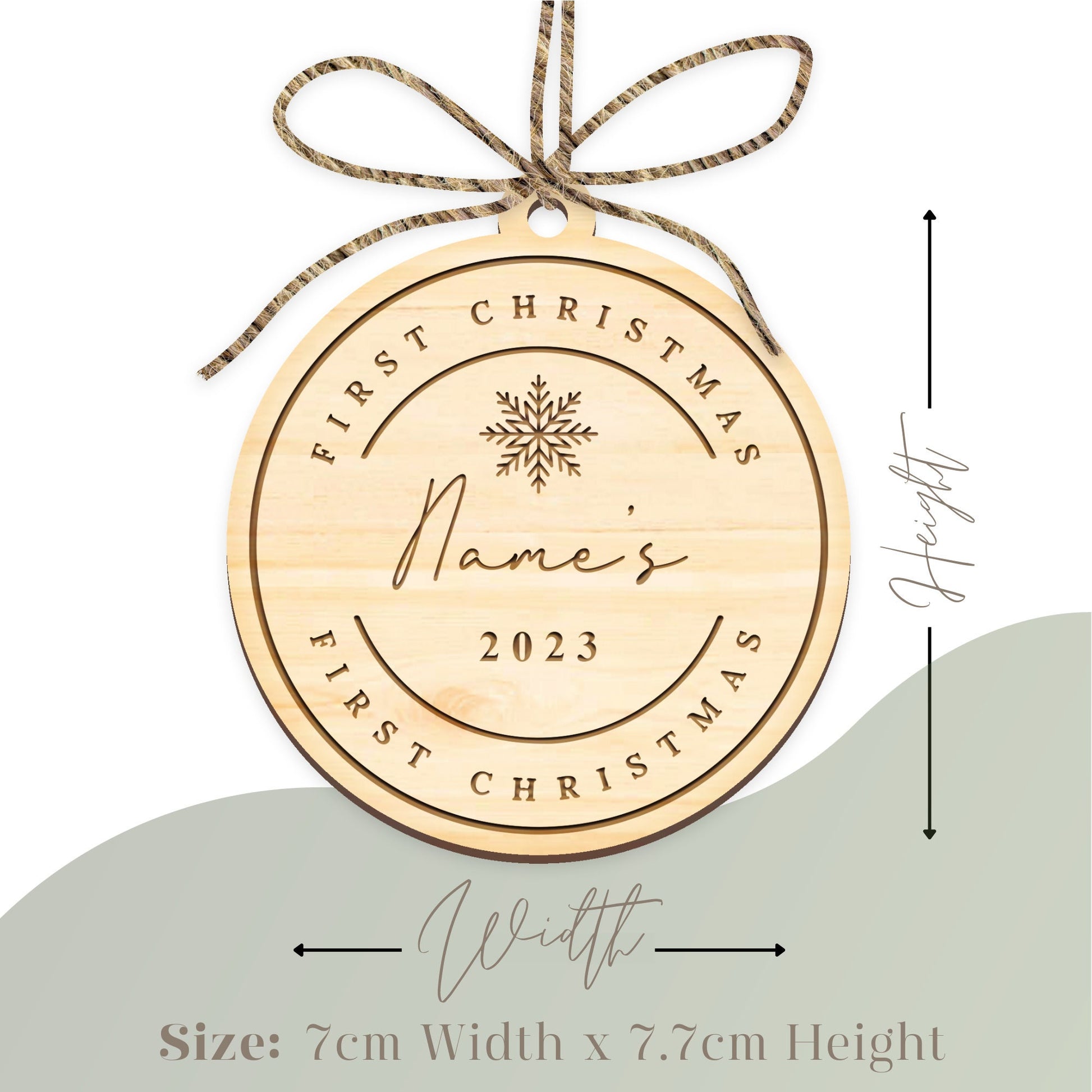 First Christmas Ornament - Personalised 1st Xmas Engraved Wooden Bauble, Cosy Christmas Hanging Baby's Name First Christmas Tree Decoration