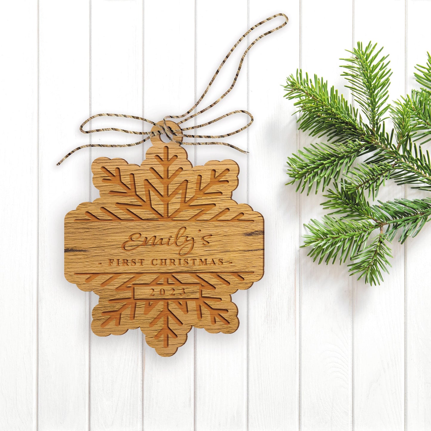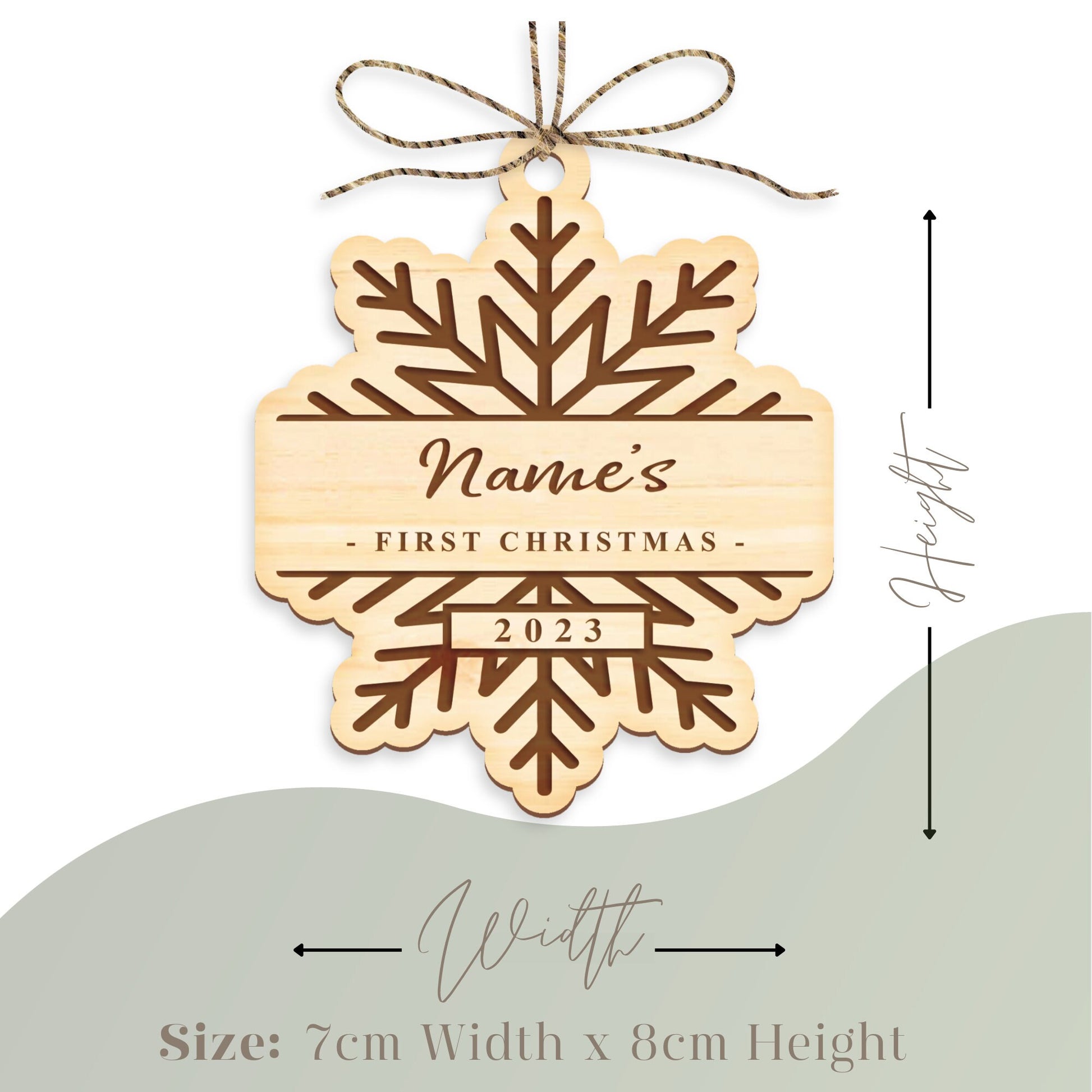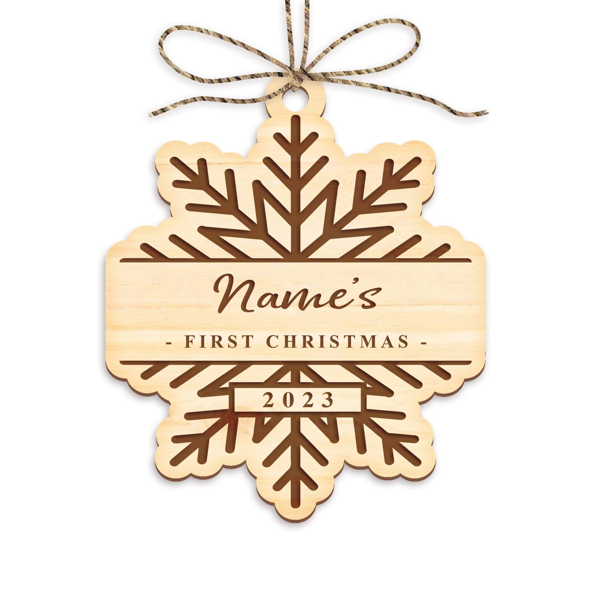First Christmas Snowflake Ornament - Personalised 1st Xmas Wooden Bauble, Cosy Christmas Hanging Baby's Name First Christmas Tree Decoration
