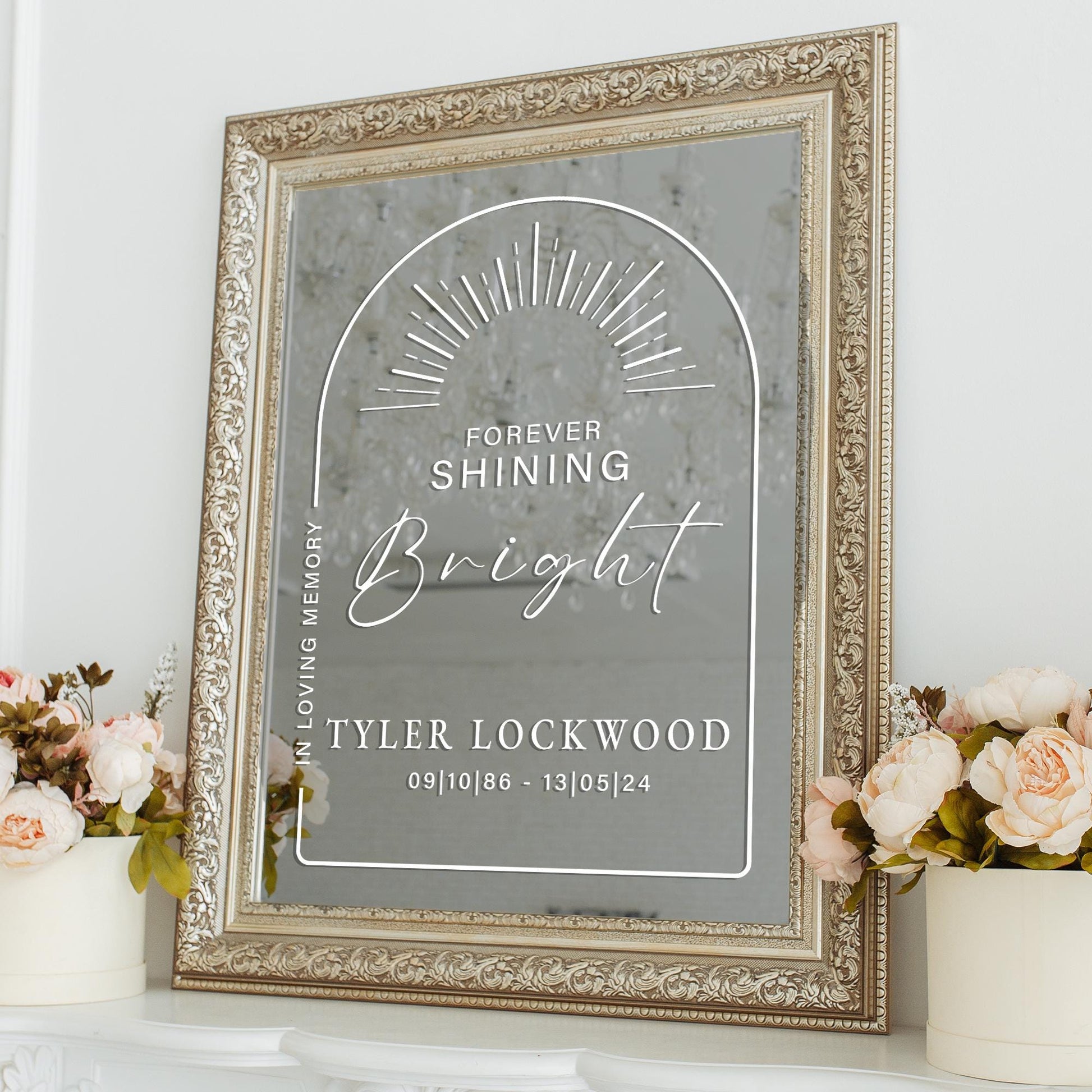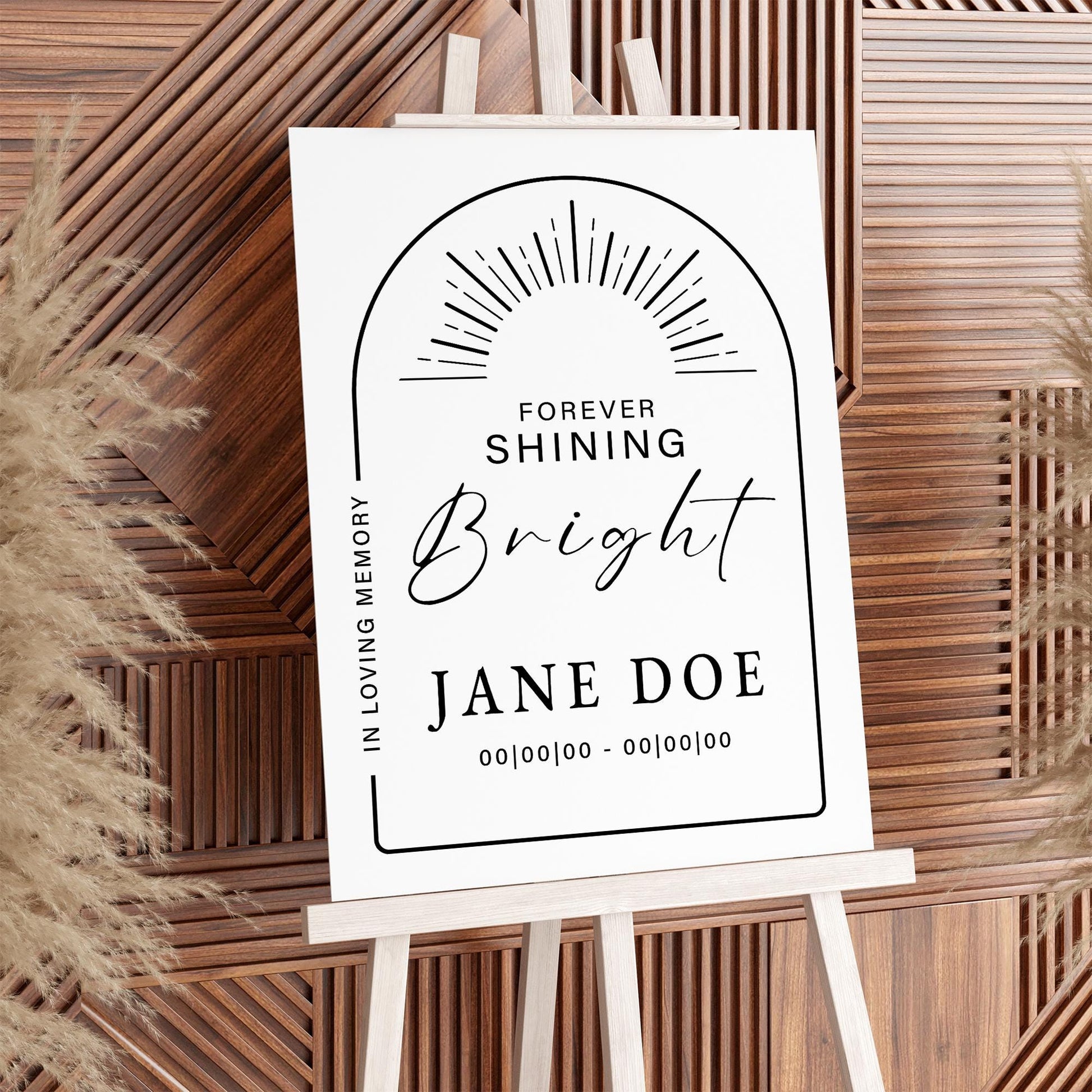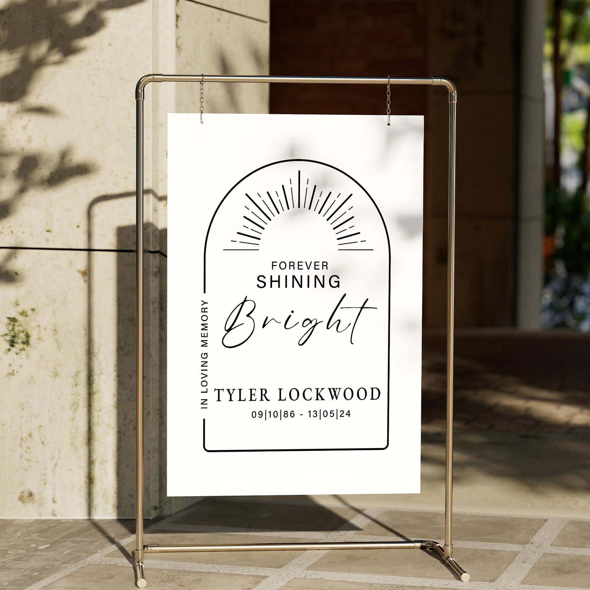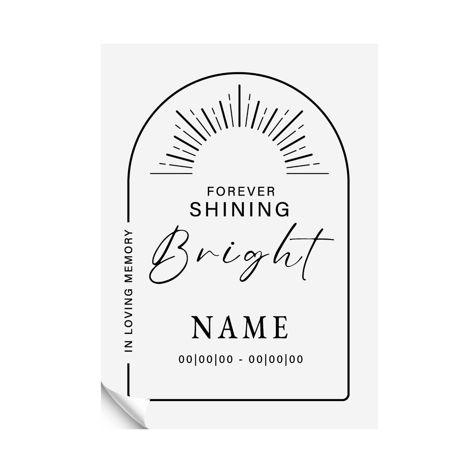 Illuminate the memory of your loved one with our "Forever Shining Bright" funeral sign. This beautifully crafted and personalized sign is designed to honour and celebrate a life that continues to inspire and shine brightly in our hearts.