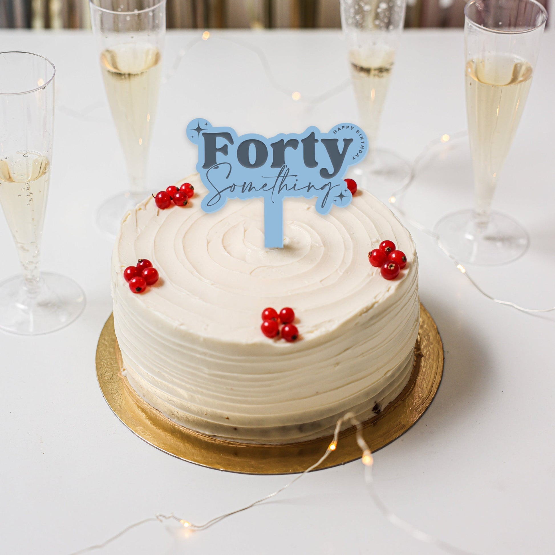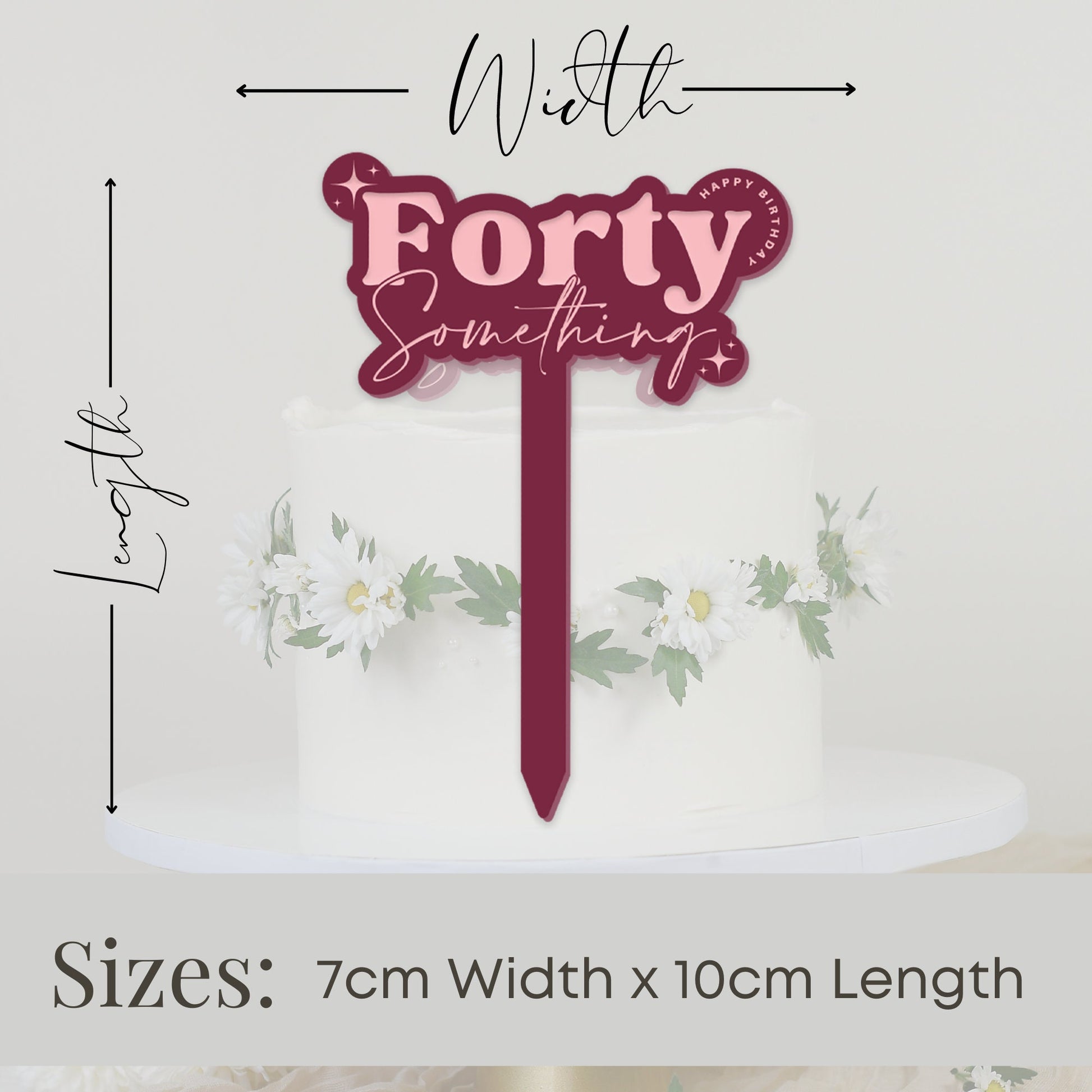 Celebrate the fabulousness of being "Forty Something" with this uniquely engraved acrylic cake topper! Perfect for those who‘ve mastered the art of adulting or are still figuring it out because age is just a number, right?