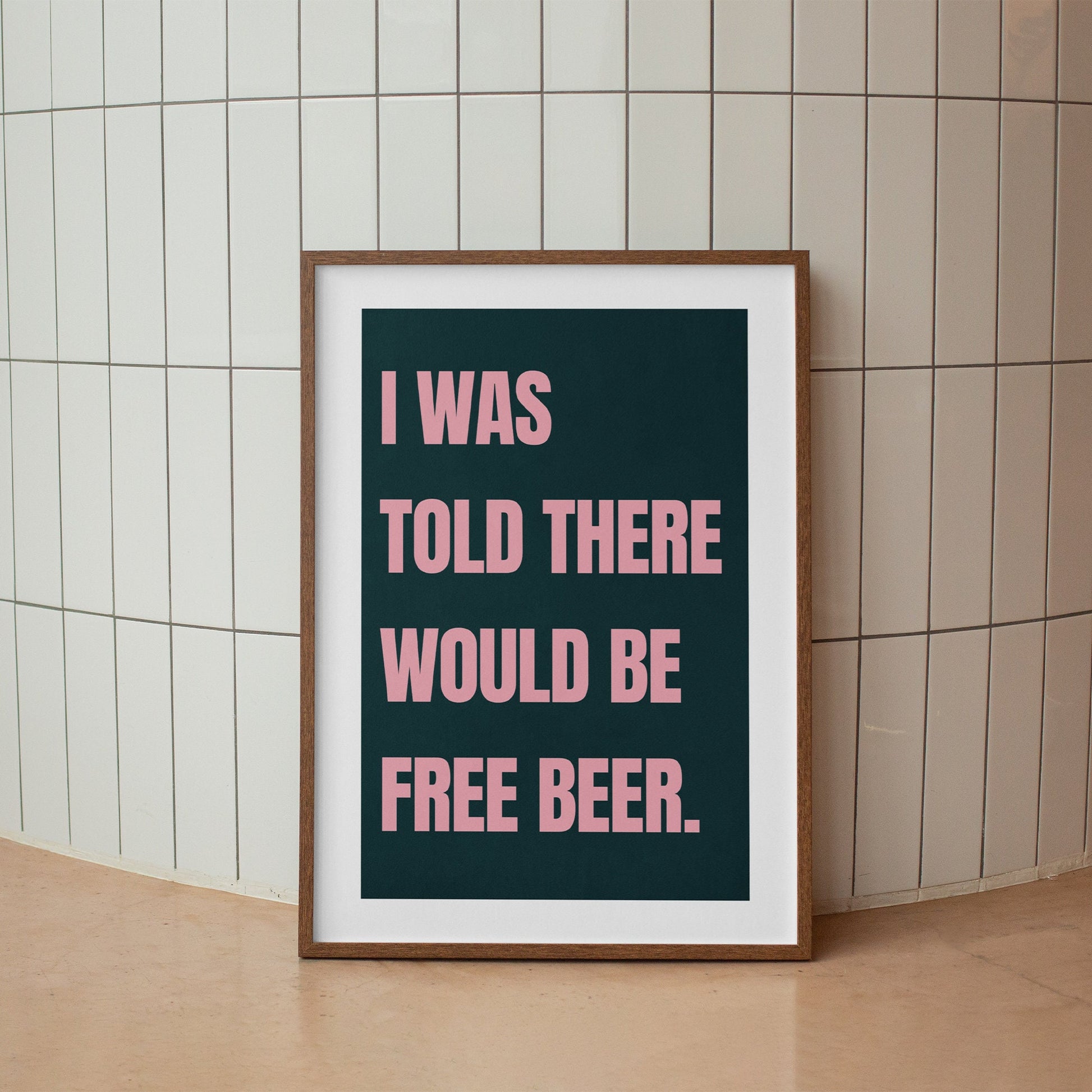 Free Beer - Green & Pink Poster: Funny Beer Themed Poster, Humorous Wall Art for Home Bar, Man Cave, Drink Print, Bold Typography Poster